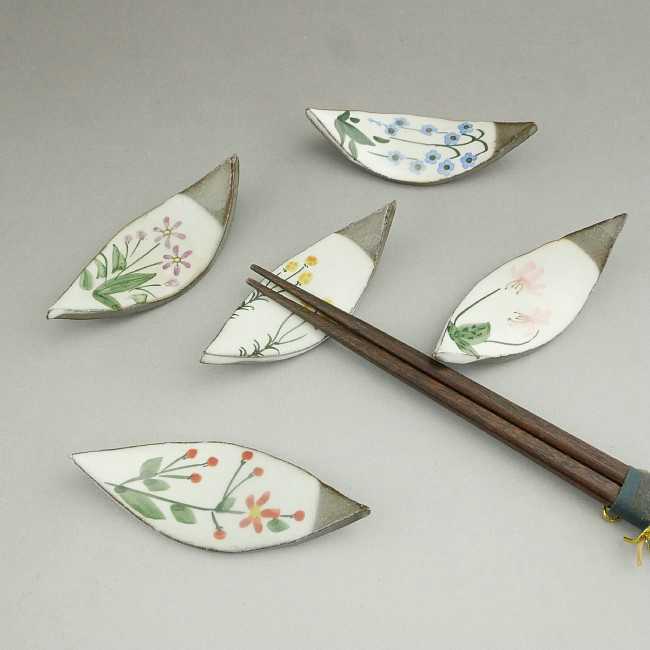 ギフト対応 京焼清水焼の窯元、嘉峰の粉引小花の箸置きセットです。シャープな形状で、ゆりかごのように揺れ、それでいて箸を置いた時の安定性は抜群。かわいい小花が揃った箸置です。五客一セットのお値段です。 ◆当店の京焼清水焼はご自分用だけでなく、 贈り物やお返し、プレゼントに大変喜んで頂いております。 【贈答用】母の日 父の日 敬老の日 バレンタイン ホワイトデー 誕生日プレゼント 【季節の贈答品】 御歳暮 御中元 暑中見舞 寒中見舞 【祝い事・お返し】 御礼 引出物 結婚祝 内祝 御祝 出産祝 新築祝い 【家族の御祝】節句祝 還暦祝 古希祝 喜寿祝 傘寿祝 米寿祝 卒寿祝 白寿祝 【外国への土産】外国の方へのお土産、プレゼント 【記念品】景品 記念品 開店記念 開業記念 配り物 他に人生の節目や、粗供養などにもご利用ください。楽天国際配送対象商品(海外配送)詳細はこちらです。 Rakuten International Shipping ItemDetails click here清水焼の窯元 嘉峰の箸置き 粉引小花のセットです。 土味をいかした柔らかい箸置き。 楕円の形状の中央をへこましてゆりかごのように揺れる箸置きに仕上げました。 野草の花を華麗に絵付け。 日本の自然を愛でる、華麗な箸置きです。 一つ一つ職人が手塗りしていますので、花の表情は微妙に違います。 平たく、長細いので箸をのせやすくお箸を置いたときの安定性は抜群。スプーン置きにもどうぞ。 日本の四季を繊細な絵付けで彩る、愛らしい清水焼の箸置きです。◆商品番号 12210 粉引小花箸置きセット 嘉峰 五客一セットのお値段です。 ■寸法 縦3cm 横7cm 高さ1.5cm 化粧箱 ※手作りですので形や色、大きさは1つ1つ異なります。 お届けする物の実際の色合いは商品ページの色合いと異なります。 撮影時の照明・パソコン・モニターの種類や設定の影響で掲載画像と実物では色の見え方が異なる場合もございます。 陶歴 伊藤 嘉峰 嘉峰窯 泉涌寺に嘉峰窯を起来し40余年昭和51年に窯を宇治炭山に移し伝統と新しい感覚をクロスオーバーさせ調和のある作品にはげんでいる。昭和52年日芸展文部大臣賞受賞、56年通産大臣賞、昭和58年度伝統工芸士認定。 初代 嘉峰のもとで研鑽を重ね、昭和59年、嘉峰窯を継承する。 陶器、半磁器を主とし、鉢や皿などの家庭食器の制作において、京焼独自の繊細な工芸世界の創出を目指している。 柿釉などの華やかな釉薬物を得意とするかたわら、繊細な絵付けを 施した器にも広範な支持をうけている。 昭和38年生まれ 京都府出身 平成4年 青窯会展理事長賞 平成5年 青窯会展京都府知事賞 平成10年 大阪・心斎橋大丸にて個展 平成14年 京焼・清水焼展にて入賞 平成20年 伝統工芸士認定 グループ展開催多数