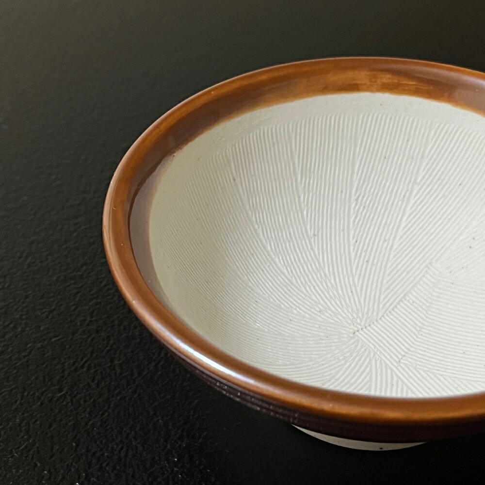 ●商品仕様● ◆サイズ:直径24.8×高さ10.5cm ◆材質:陶器(駄知焼/美濃焼) ◆重量:約1260g ◆生産:日本 ■特徴 「すり鉢」は何世紀にもわたり、庶民の日常的な調理道具として 親しまれております。 胡麻和え、白和え、つみれ、とろろ汁・・・と日本の食文化を 支えてきました。 現在、このすり鉢の生産量で、全国の約6割を占めているのが 美濃焼の里、岐阜県土岐市駄知町にあるマルホン製陶所です。 マルホン製陶所のすり鉢は、硬い焼き物と、確かな櫛目(くしめ)、 長年同じ輝きをもつ茶色のデザインが特徴的で、家庭用から 業務用まで幅広く、多くの人から高い評価を受けております。 7号、8号すり鉢はご家庭で一番使われているサイズ。 迷った時は7号か8号をお選びください。 関連商品 シナノキすりこぎ棒 山椒すりこぎ棒 すりこぎ棒の選び方も、性差、対格差などで 個人差があるかとはおもいますが、鉢の直径の 1.2倍から1.5倍くらいでご検討ください。 【7号すりばちのすりこぎ棒オススメサイズ】 24〜33cm すり鉢の生産量で全国の約6割を占めている、マルホン製陶所のすり鉢です。 この製陶所では、すり鉢作りを一筋に、100年もの歴史を刻んでいる 歴史のある窯元です。 すり鉢の櫛目(くしめ)は、硬くて丈夫であるのが特徴。 熟練の職人が作り上げたものは、まるで菊模様のように美しく デザイン性と機能性を兼ね備えております。 この技術があるからこそ、100年以上もの間、世代を超えて 愛されている理由です。 このすり鉢を使って、実際に自分の手加減ですりおろした 食材の食感や、おろしたてのごまの風味は格別です。 山芋はすり鉢ですりおろしたものでないと、粘り気が全然違います。 4号や5号の小さいサイズは、ちょっとした下ごしらえや、 胡麻などをすりながら、食器として食卓で使うサイズです。 一般的な「すり鉢」としてご家庭で使い易いのは、7号から8号 くらいの大きさかと思います。 食材にもよりますが、7号でおおむね1~2人、8号で3~4人、 見当とお考えください。 すりこぎ棒の選び方も、性差、体格差などで個人差があると 思いますが、鉢の直径の1.2倍から1.5倍くらいでご検討ください。 (4号、5号については同じくらいの長さが丁度いいです。)