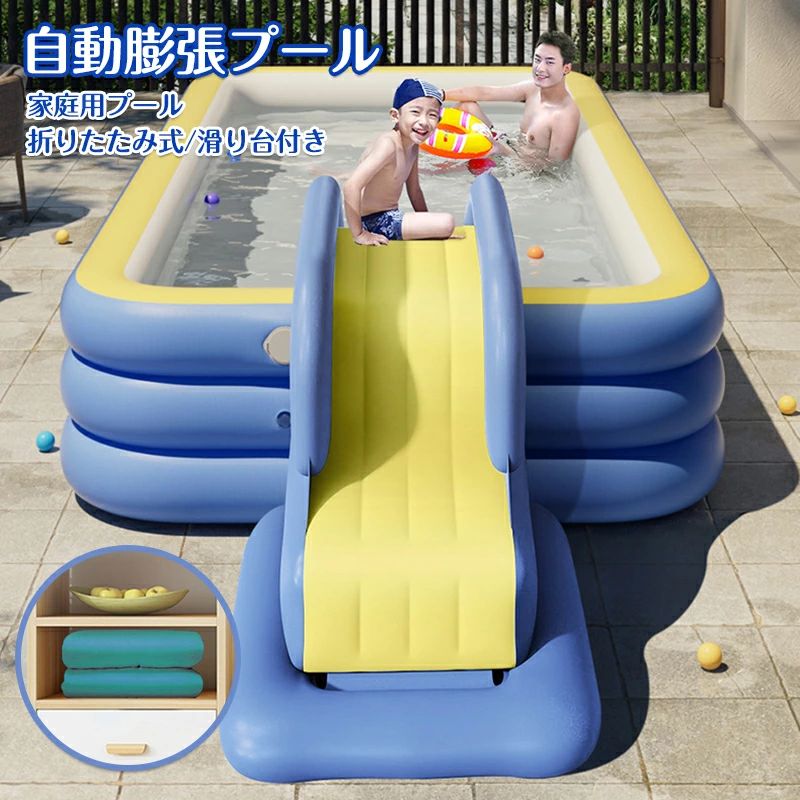 ファミリープール 屋外の遊び場 210cm PVC素材 独立気室 暑さ対策 折り畳み収納 滑り台 自宅 マンション 水遊 海水浴 子供 キッズ 大人 長方形 深い キッズ 三層 家庭用プール 子供用プール キッズプール 庭 ベランダ 水あそび レジャープール