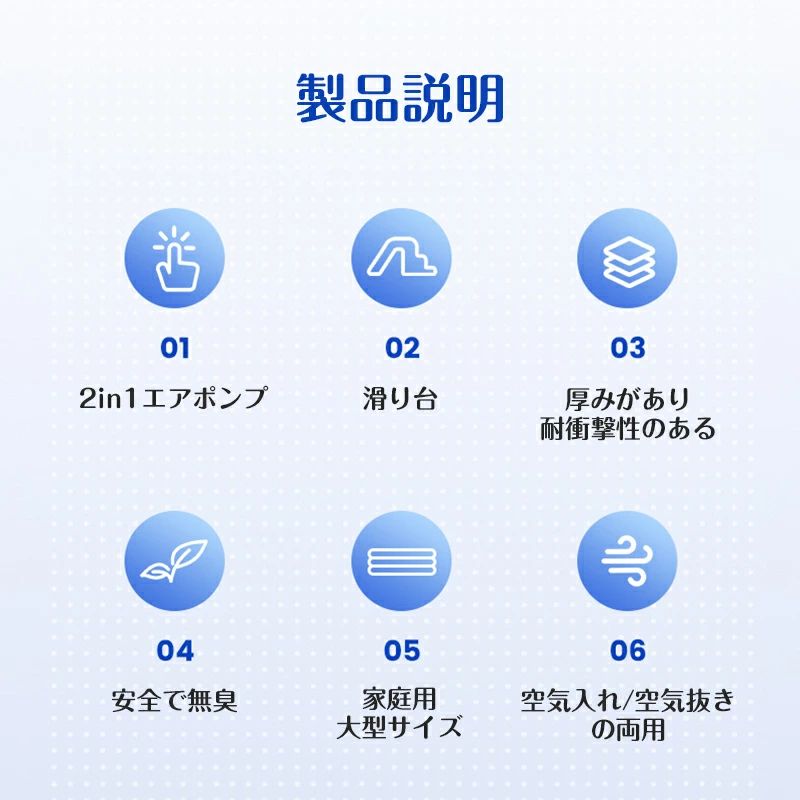 商品の説明★ポータブル空気充填 ワンタッチ空気充填 40+秒で成型商品の特徴★【環境に優しい素材】厚くされたPVC安全素材を採用し、アップグレードされた素材、厚く耐久性があり、損傷しにくいです。★【耐磨耗耐高温】高品質の厚いPVC素材を採用し、70℃までの高温に耐えて高温中でも変形しません。高温で臭い匂いがするのも心配要りません。環境に優しい素材は厚くて安全、耐久性があり、損傷しにくいです。この夏、家でもプールパーティを楽しめます。★【自動充填機能】ワイヤレスのエアポンプが付き、蓄電式の手動不要でアウトドアにも使用できます。ワンボタンで自動的に空気を充填して成形できます。手動で空気を入れる手間を省きます。★【衛生な水泳環境】自宅でいつでもレジャープールを作れて、公共の場所に行かないで、見知らぬ人とプールを共用する必要がないです。あなたの個人プールの夢を丸くして、子供にきれいで衛生な娯楽環境をあげます。友達を呼んで、一緒に暑い季節を楽しみましょう。★【【大型ファミリープール】大型家庭用プールは三層のPVC材質で作られ、より厚さし、安全無毒し、耐久性と耐熱性も高いのです。子供も安心で利用できます!【使用上の注意】※必ず保護者同伴のもと、本商品をご利用下さい。※対象年齢未満のお子様は使用しないでください。※本商品はPVC(ポリ塩化ビニル)を使用しております。材質の特性上、接触・摩擦による他製品への色移り、または本商品への色移りすることがありますのでご注意ください。【注意事項】※海外製品の為、実寸が多少異なる商品も御座います。1、PC環境・光の具合により、色や素材のイメージが写真と若干異なる場合がございます。2、商品写真はできる限り実物の色に近づけるよう加工しておりますが、お客様のお使いのモニター設定、お部屋の照明等により実際の商品と色味が異なる場合がございます。3、商品の仕様は改良等のため予告なく変更する場合があります。また本サイトの写真とお届け商品の色合いが多少異なる場合や、制作の都合上、柄などの出方が写真と異なる場合がございますので、ご了承下さい。商品の説明★ポータブル空気充填 ワンタッチ空気充填 40+秒で成型商品の特徴★【環境に優しい素材】厚くされたPVC安全素材を採用し、アップグレードされた素材、厚く耐久性があり、損傷しにくいです。★【耐磨耗耐高温】高品質の厚いPVC素材を採用し、70℃までの高温に耐えて高温中でも変形しません。高温で臭い匂いがするのも心配要りません。環境に優しい素材は厚くて安全、耐久性があり、損傷しにくいです。この夏、家でもプールパーティを楽しめます。★【自動充填機能】ワイヤレスのエアポンプが付き、蓄電式の手動不要でアウトドアにも使用できます。ワンボタンで自動的に空気を充填して成形できます。手動で空気を入れる手間を省きます。★【衛生な水泳環境】自宅でいつでもレジャープールを作れて、公共の場所に行かないで、見知らぬ人とプールを共用する必要がないです。あなたの個人プールの夢を丸くして、子供にきれいで衛生な娯楽環境をあげます。友達を呼んで、一緒に暑い季節を楽しみましょう。★【【大型ファミリープール】大型家庭用プールは三層のPVC材質で作られ、より厚さし、安全無毒し、耐久性と耐熱性も高いのです。子供も安心で利用できます!【使用上の注意】※必ず保護者同伴のもと、本商品をご利用下さい。※対象年齢未満のお子様は使用しないでください。※本商品はPVC(ポリ塩化ビニル)を使用しております。材質の特性上、接触・摩擦による他製品への色移り、または本商品への色移りすることがありますのでご注意ください。【注意事項】※海外製品の為、実寸が多少異なる商品も御座います。1、PC環境・光の具合により、色や素材のイメージが写真と若干異なる場合がございます。2、商品写真はできる限り実物の色に近づけるよう加工しておりますが、お客様のお使いのモニター設定、お部屋の照明等により実際の商品と色味が異なる場合がございます。3、商品の仕様は改良等のため予告なく変更する場合があります。また本サイトの写真とお届け商品の色合いが多少異なる場合や、制作の都合上、柄などの出方が写真と異なる場合がございますので、ご了承下さい。