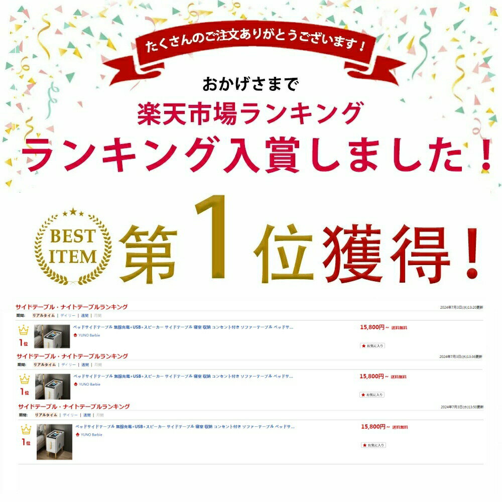 ベッドサイドテーブル 無線充電 USB スピーカー サイドテーブル 寝室 収納 コンセント付き ソファーテーブル ベッドサイド ベッドルームロッカー 調節可能なLEDライト付き USBポート 収納引き出し 寝室 リビングルーム用