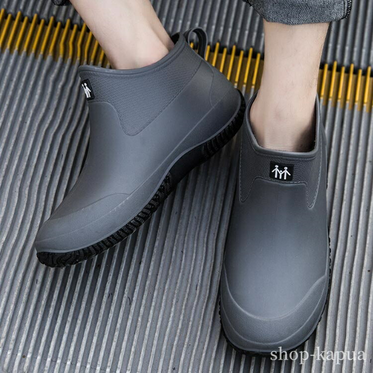 雨の日でもお洒落!男女兼用のレインシューズです。柔軟性のある素材を採用し、歩きやすいので長時間歩いても足が疲れにくいです。完全防水となって、雨や雪の日も足が濡れる心配はありません。靴底はしっかりした凹凸が入っているので、グリップ力が抜群、濡れた地面でも滑りにくく気楽に履けます。通勤・通学・カジュアルからビジネスまで様々なシーンで活躍してくれます。カラフルなカラーバリエーションで暗い雨の日でも明るく元気な足元を演出してくれます。 サイズ22.5cm 23cm 23.5cm 24cm 24.5cm 25cm 25.5cm 26cm 26.5cm 27cm 27.5cmサイズについての説明22.5cm 23cm 23.5cm 24cm 24.5cm 25cm 25.5cm 26cm 26.5cm 27cm 27.5cm素材PVC色ブラック レッド グリーン ロース グレー備考 ●サイズ詳細等の測り方はスタッフ間で統一、徹底はしておりますが、実寸は商品によって若干の誤差(1cm〜3cm )がある場合がございますので、予めご了承ください。 ●商品の色は、撮影時の光や、お客様のモニターの色具合などにより、実際の商品と異なる場合がございます。あらかじめ、ご了承ください。●製品によっては、生地の特性上、洗濯時に縮む場合がございますので洗濯時はご注意下さいませ。▼色味の強い製品によっては他の衣類などに色移りする場合もございますので、速やかに(脱水、乾燥等)するようにお願いいたします。 ▼生地によっては摩擦や汗、雨などで濡れた時は、他の製品に移染する恐れがございますので、着用の際はご注意下さい。▼生地の特性上、やや匂いが強く感じられるものもございます。数日のご使用や陰干しなどで気になる匂いはほとんど感じられなくなります。