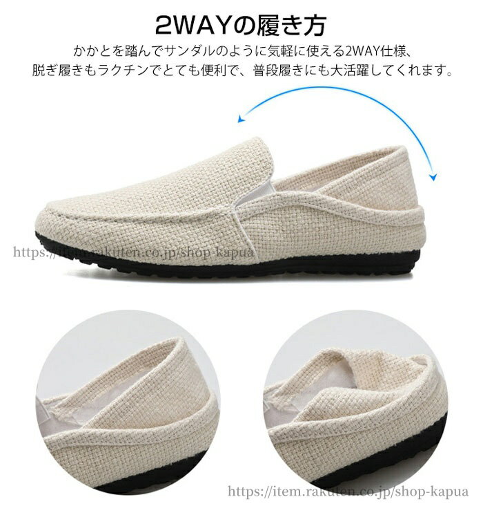 【送料無料】2way かかとが踏める スリッポン メンズ ドライビングシューズ モカシン ローファー メンズ スニーカー シューズ 麻 通気 軽量