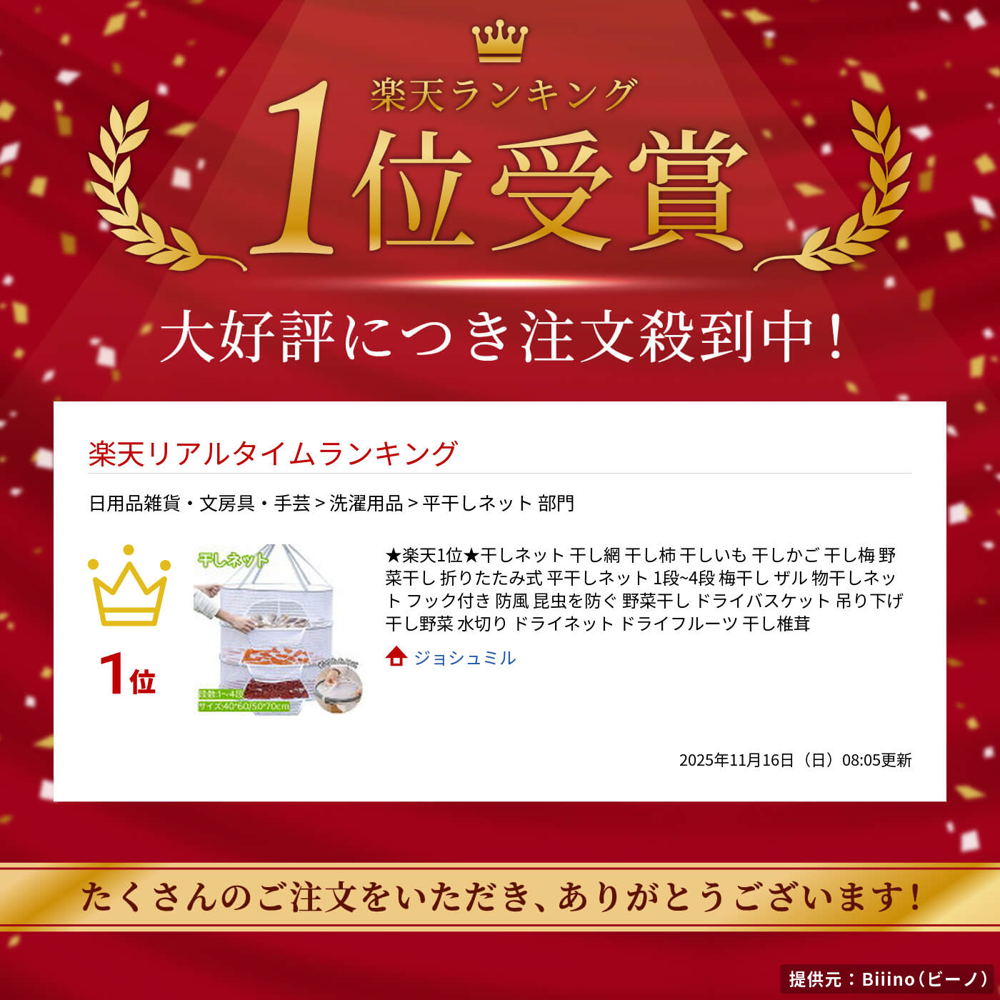 ★楽天1位★干しネット 干し網 干し柿 干しいも 干しかご 干し梅 野菜干し 折りたたみ式 平干しネット 1段~4段 梅干し ザル 物干しネット フック付き 防風 昆虫を防ぐ 野菜干し ドライバスケット 吊り下げ 干し野菜 水切り ドライネット ドライフルーツ 干し椎茸