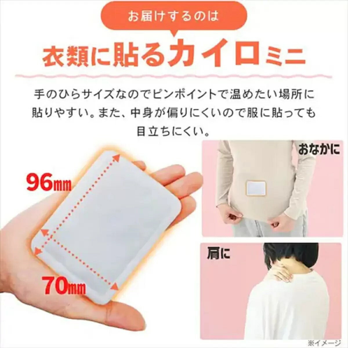 アイリスオーヤマ 貼るカイロミニ60パック 冷え 寒さ対策 大容量 使い捨てカイロ ミニサイズ 持続時間10時間 冬 ぽかぽか家族 アイリスオーヤマ 貼るカイロミニ60パック 冷え 寒さ対策 大容量 使い捨てカイロ ミニサイズ 持続時間10時間 冬 ぽかぽか家族 ミニサイズの衣類に貼るタイプの使い捨てカイロ!ちょっと寒い時にかさばらないミニサイズ冬の必需品です。足腰の冷え、通勤通学、屋外作業、レジャー・スポーツ観戦にお勧めです。【製品仕様】平均温度:50度最高温度:60度持続時間:約10時間 【主要材質】鉄粉、水、バーミキュライト、活性炭、塩類、高吸水性樹脂、木粉 【サイズ】幅約9.6×高さ7 【生産国】日本 5
