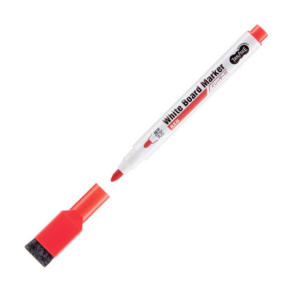 (まとめ) TANOSEEイレーザー付ホワイトボードマーカー 細字・丸芯 赤 1セット(10本) 【×10セット】