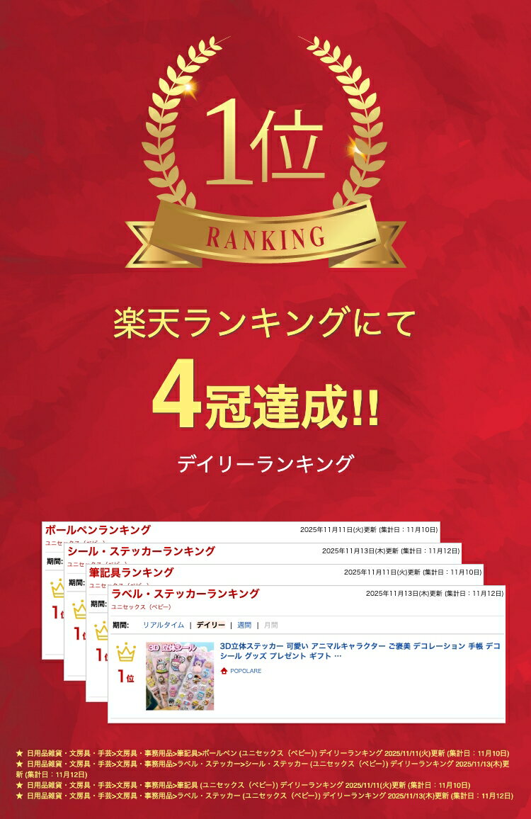 3D立体ステッカー 可愛い アニマルキャラクター ご褒美 デコレーション 手帳 デコ シール グッズ プレゼント ギフト キャラクター 韓国雑貨 送料無料 プレゼント 入学 入園 誕生日 学用品 かわいい 女の子 おしゃれ 文具 おもしろい 女子 文房具 人気 景品 まとめ買い割引