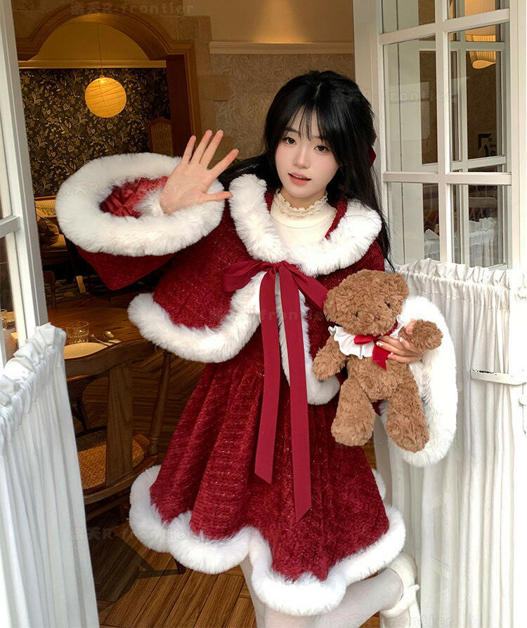 クーポン利用可★ ロリータ ドレス ワンピース 女の子 可愛い コスプレ服 コート もこもこ クマ耳 ワインレッド クリスマス Lolita 甘ロリ ロリィタ JSK チェック柄 マント キャミソールワンピ クリスマス ダンス 衣装 レディース ジャンパースカート パーティー 発表会