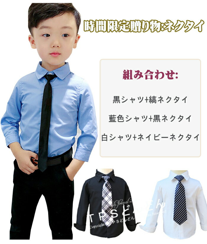 【当店人気★ネクタイおまけ】男の子 ワイシャツ 子供服 シャツ キッズ フォーマルスーツ おしゃれ トップス フォーマルシャツ 子供 ワイシャツ 長袖 入学式 七五三 結婚式 ブラウス 卒業スーツ ピアノ 祝い 記念日 プレゼント 英国風 発表会 黒