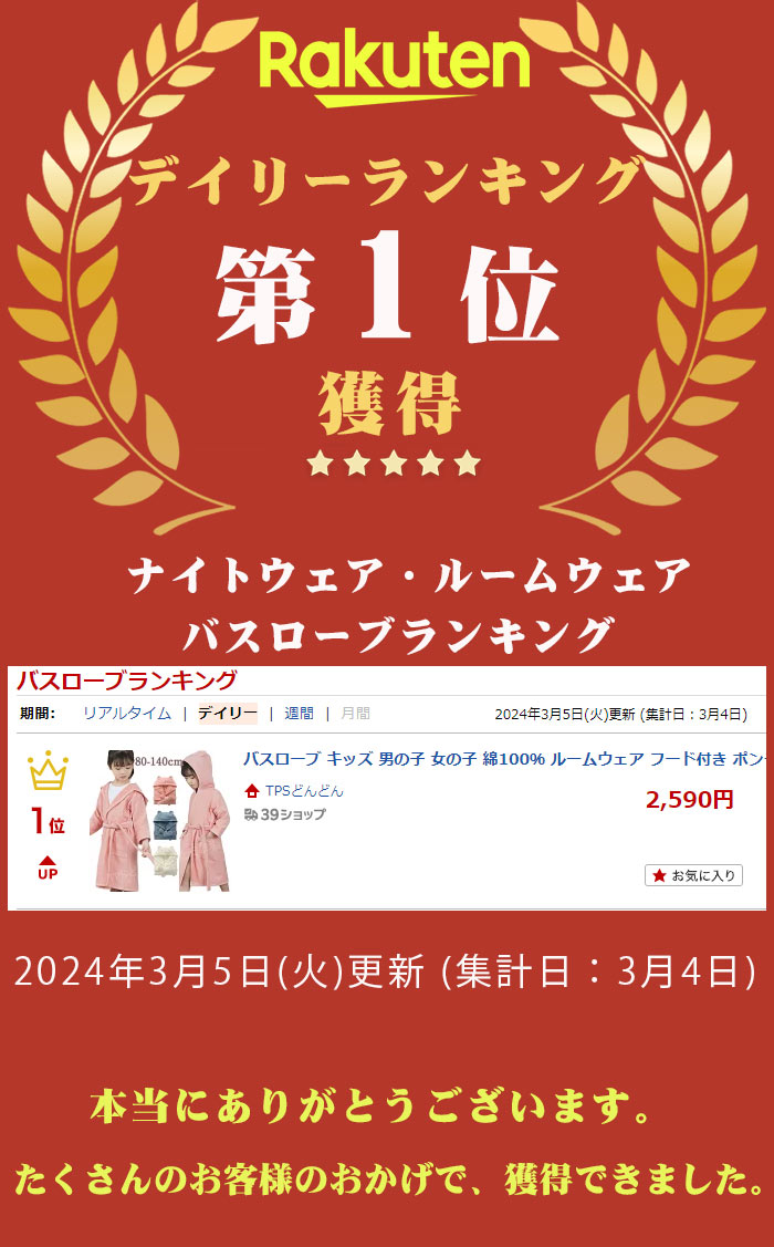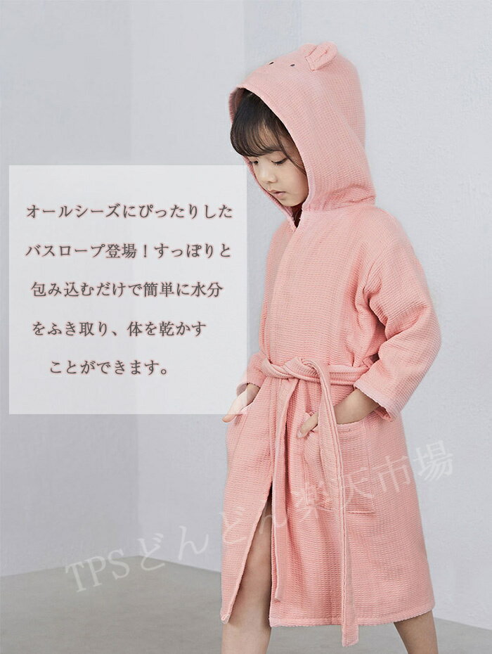 メーカー希望小売価格はメーカーサイトに基づいて掲載しています商品名 かわいい子供用アニマルバスローブ♪ 素材 100% コットン サイズ S/M/L カラー ピンク、ブルー、ホワイト セット内容 バスローブ 商品紹介 【キッズ用バスローブ】オールシーズにぴったりしたバスロープ登場!すっぽりと包み込むだけで簡単に水分をふき取り、体を乾かすことができます。 【柔らかく安心な素材】綿100%の素材を使用しているので、ふわふわとした肌触りです。敏感肌のキッズにも安心してお使いいただけます。 適切なサイズと軽量化なデザイン、家庭用や旅行など快適に使えます。 フェイスタオル、ハンドタオルやハンカチなどのお代わりに使用の方も多いです。 【デザイン性】両腰にベルトが付いて、ウェストサイズが自由に調整可能で、簡単に着せます。フード付きなので、身体はもちろん、髪の毛の水分もしっかりとキャッチ! 【様々なシーンで適合】お風呂上がりに使うのはもちろんですが、それ以外にもプールや海水浴などでも使えます。日常生活でルームウェアとしてもいいです。 注意事項 ※30度のぬるま湯に中性洗剤を薄めて優しく単品手洗いして下さい。 ※お客様のモニター環境により実物の色合いと若干お色目が異なる場合がございます。 ※商品生地、色合い、コサージュやその他装飾部品の色やデザイン等、生産時期によって、 差異が生じます。そのため、同じ商品を複数点ご購入の場合、場合によって色、コサージュのデザイン等差異がでる場合がございます。ご了承ください。 ※着用・保管頂きます際には他のものとの摩擦などにより色移りや傷になる場合が 御座いますのでご注意ください。