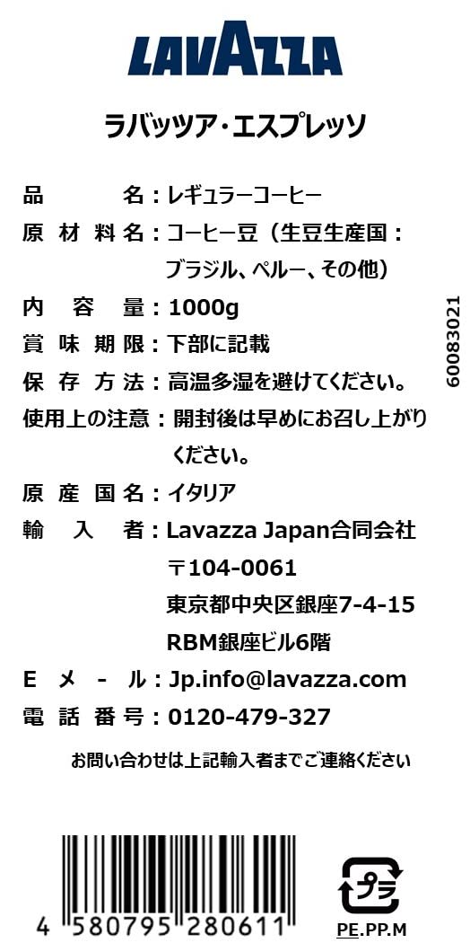 他店舗と在庫併用の為、品切れの場合はご容赦くださいませ。 ラバッツァカッフェエスプレッソは、主にラテンアメリカ産の高級アラビカ種を100%使用した、濃厚でベルベットのような味わいのブレンドです。特別にローストされたこのコーヒーは、チョコレートのような香りを持つ大胆なコーヒーです。イタリア特有のダークな風味を好む方に最適です。ショートブラックからミルクベースのドリンクまで、すべてのコーヒーに適しています。100%アラビカ豆使用。味のコクは、10段階のうち5段階目。香りは、フローラルとフルーツ系。焙煎度合いはミディアム。抽出方法は、モカポッド、フレンチプレス、ドリップコーヒー、エスプレッソコーヒーに適しています。1kgパック入り。 原材料・成分 コーヒー豆(生豆生産国名:ブラジル、ペルー、その他) 原材料・成分 コーヒー豆(生豆生産国名:ブラジル、ペルー、その他)原産国:イタリア原材料:コーヒー豆(生豆生産国名:ブラジル、ペルー、その他)内容量:1000gサイズ:幅150×奥行100×高さ250他店舗と在庫併用の為、品切れの場合はご容赦くださいませ。 ラバッツァカッフェエスプレッソは、主にラテンアメリカ産の高級アラビカ種を100%使用した、濃厚でベルベットのような味わいのブレンドです。特別にローストされたこのコーヒーは、チョコレートのような香りを持つ大胆なコーヒーです。イタリア特有のダークな風味を好む方に最適です。ショートブラックからミルクベースのドリンクまで、すべてのコーヒーに適しています。100%アラビカ豆使用。味のコクは、10段階のうち5段階目。香りは、フローラルとフルーツ系。焙煎度合いはミディアム。抽出方法は、モカポッド、フレンチプレス、ドリップコーヒー、エスプレッソコーヒーに適しています。1kgパック入り。 原材料・成分 コーヒー豆(生豆生産国名:ブラジル、ペルー、その他) 原材料・成分 コーヒー豆(生豆生産国名:ブラジル、ペルー、その他)原産国:イタリア原材料:コーヒー豆(生豆生産国名:ブラジル、ペルー、その他)内容量:1000gサイズ:幅150×奥行100×高さ250
