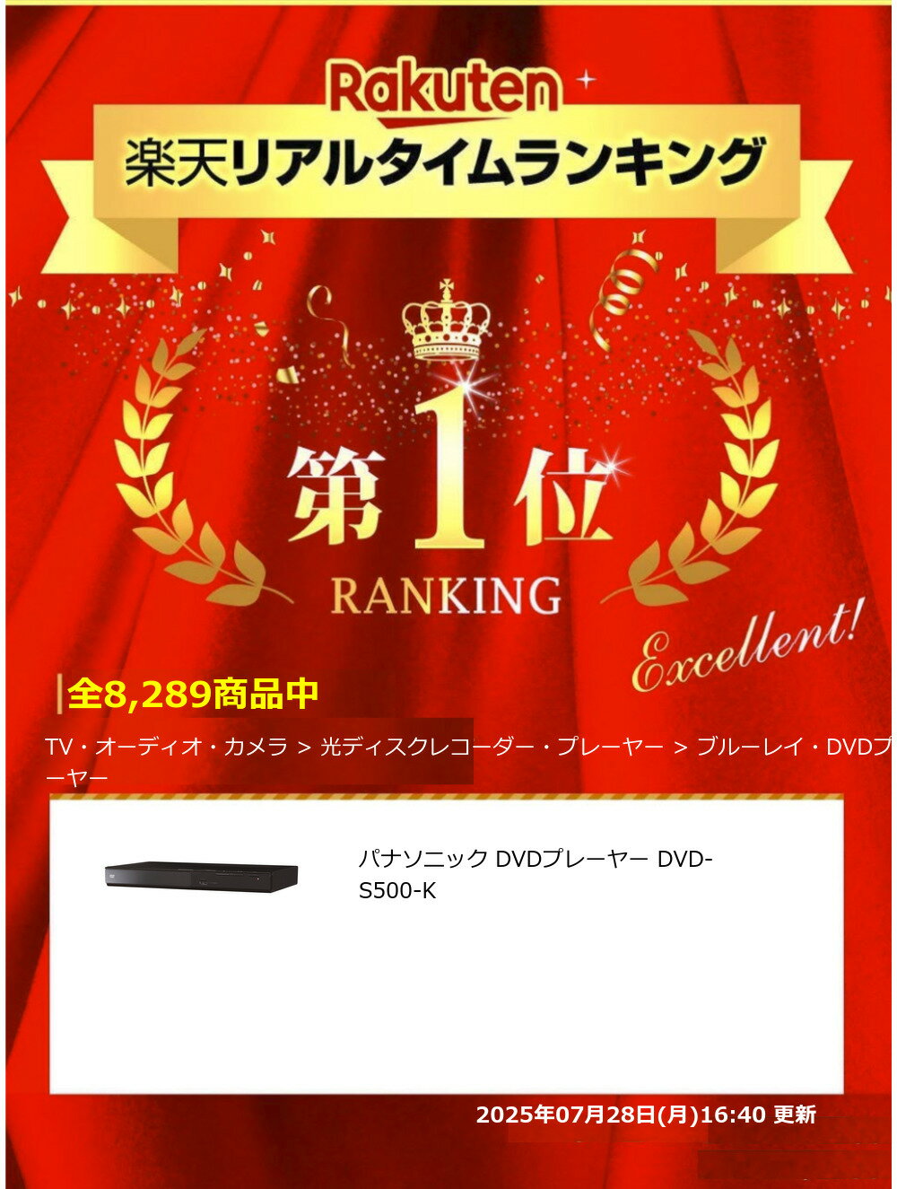 【送料無料】【楽天ランキング1位獲得】パナソニック DVDプレーヤー DVD-S500-K