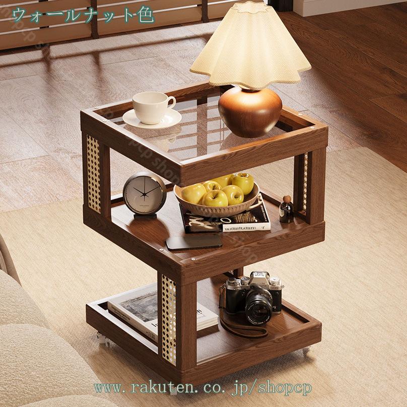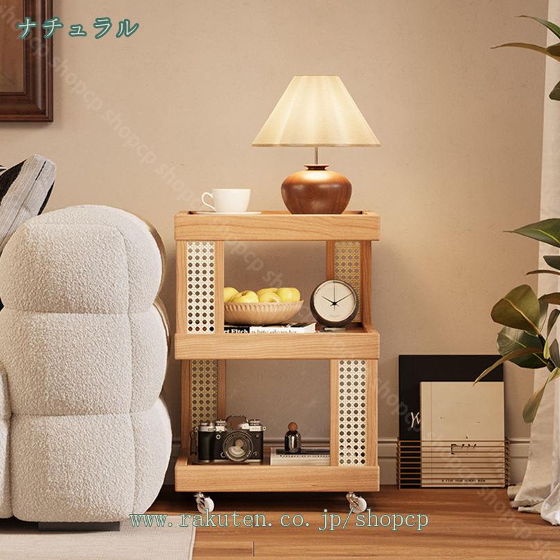 1000円OFFクーポン キャスター付き 籐製 ナイトテーブル 木製 おしゃれ レトロ ベットサイドテーブル 収納棚 寝室 書斎 リビーリング サイドテーブル ナイトテーブル サイドチェスト 北欧 モダン 一人暮らし オープンシェルフ shopcp