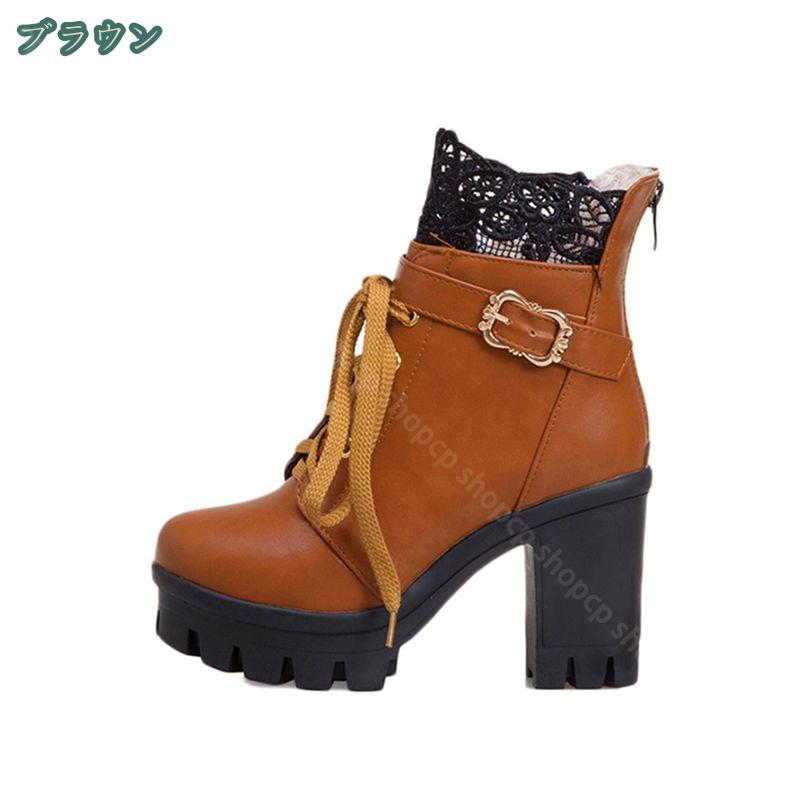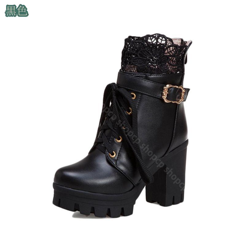300円OFFクーポン ロリータ 靴 ブーツ レディース バックジップ 厚底 太ヒール チャンキーヒール ショートブーツ ブーティ ハイヒール 歩きやすい 秋 冬 姫系 レース付き かわいい 編み上げ ブーツ 疲れない コスプレ 女子 shopcp