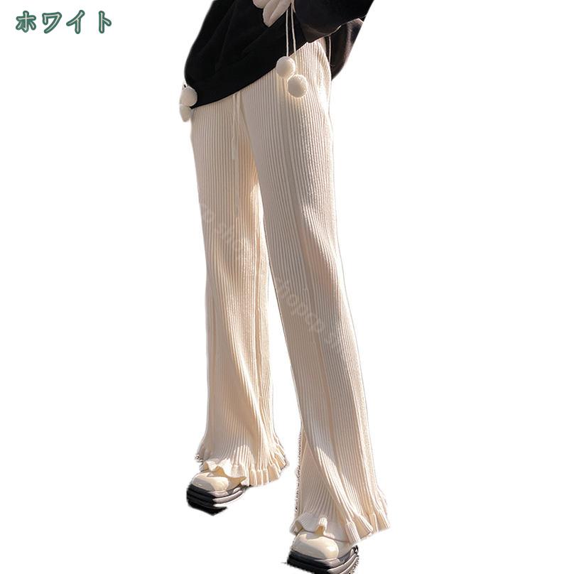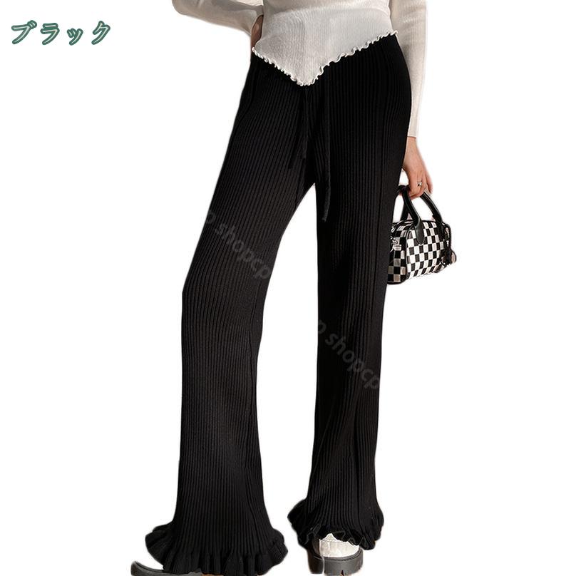 300円OFFクーポン パンツ レディース 秋冬 ニット レディース 上品 リブニット ワイトパンツ ハイウエスト ニット リブニットパンツ ワイド ストレッチ リブ編み フレアパンツ ウエストゴム リラックス ボトムス レディース shopcp