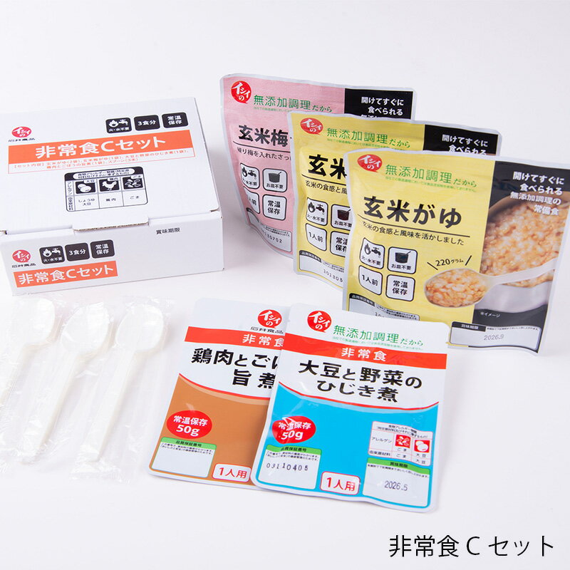 ■セット内容:非常食Cセット(常温品)×1 ■製造者:石井食品株式会社 千葉県船橋市本町2-7-17 ■販売者:株式会社ダイレクトイシイ 【関連ワード】 防災食 保存食 レトルト おいしい 豊富 品数 種類 ごはん 食べ物 非常食 非常食セット 保存食 保存食セット 段ボール 備蓄 保管 買い置き ストック ローリングストック おかず お米 防災グッズ 防災セット 災害対策 避難用品 非常用 非常持ち出し 地震対策 地震対策グッズ 震災グッズ 避難セット 避難グッズ 避難防災セット 避難 持出用品 災害 グッズ 災害 水害対策 非常時用 災害支援 被災者支援 豪雨対策 学校 自宅 家庭 自治体 会社 法人 防災食品 備蓄品 備蓄食料 国産食品 災害食 ご飯 ごはん 国産米 防災 減災 防災用品 自助 公助 災害 自然災害 地震 停電 大雨 台風 大雪 竜巻 浸水 水害 在宅避難 避難 ライフライン停止対策 インフラ対策 長持ち 美味しい おすすめ バリエーション豊富 贈り物 ギフト プレゼント【賞味期限約4年】非常食Cセット 水なしでそのまま食べられる!国産うるち玄米使用で、おかずに「旨煮」と「ひじき煮」を含めた3食分 ・玄米がゆ[2袋]・玄米梅がゆ[1袋]・鶏肉とごぼうの旨煮[1袋]・大豆と野菜のひじき煮[1袋] 長期保存できて安心のイシイの非常食セット 2017年の内閣府「防災に関する世論調査」によると 「大地震に備えて食料や飲料水を用意している」という人の割合は45.7%だそうです。都市部など人口密度の高い地域では、物資などが手元に届くまで時間がかかるため、3日から7日×人数分の備蓄が必要といわれています。 【非常食一覧】はこちら。