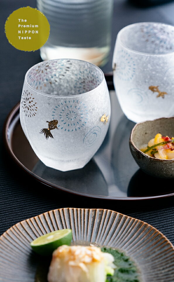 * 商品詳細情報 * サイズ: 最大88mm 口径75mm 高さ92mm 容量345ml 箱サイズ: 長103mm×幅180mm×高89mm 原産国: 日本製 セット内容: グラス2個 その他: セット箱入 水面に映る「花火」が金魚の作り出す水紋と重なる 日本ならではの情緒を描きました。 まるで水晶の如くキラキラと煌くグラス表面に、 金色の桜文様が踊るモダンで涼しげな風合いの 趣ある酒グラスです。 ※こちらの商品は、金・ラスターを使用して おります。色落ちすることがありますので、 食器洗い乾燥機でのご使用はお避けください。 洗浄の際は、優しく手洗いをおすすめします。↓ 花火シリーズはこちら ↓ ↓ プレミアムニッポンテイストシリーズはこちら ↓