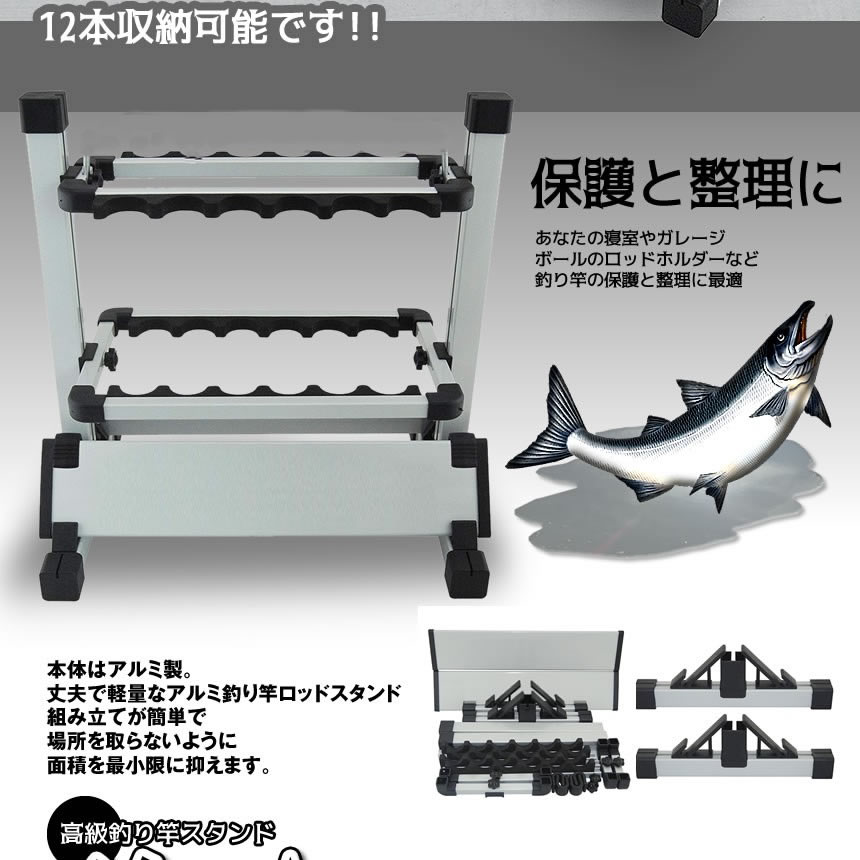 ■商品説明■ ロッドスタンドは あなたの釣り竿をきれいな直立姿勢に戻します。 高品質のアルミニウム製で、耐錆性が高いです。 カスケット付きのロッドスタンドは ロッドハンドルを保護し、しっかりと固定します。 簡単に組み立て、軽量、およびキャリングハンドルは ロッドスタンドをポータブルにします。 寸法(長さ×高さ×幅): 12本のロッド:43cm×40cm×31cm 12ロッドスタンドはどんな隅にも ★★送料無料★★ ※北海道は330円、離島地域及び沖縄県は950円にて承ります。