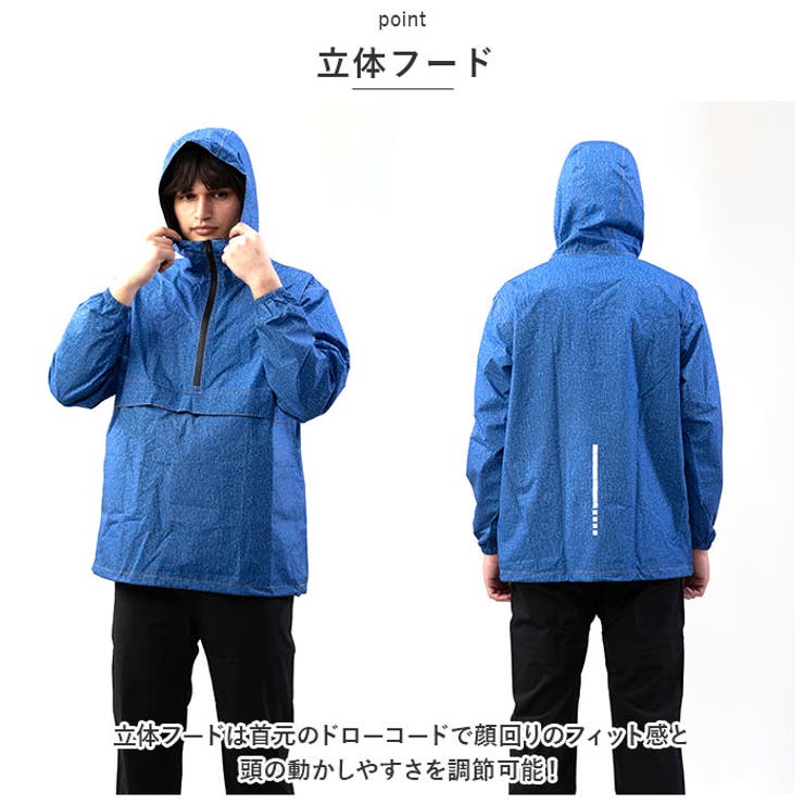 ・オールシーズン使えて、雨の侵入を防ぎ、ムレを逃がす!高機能タイプのストレッチレインウェアが登場!【動きやすい】・生地自体が伸び縮みするため、体を大きく動かしても衣服に拘束されている感じがせず着心地がいい。【透湿防水素材】・耐水圧:10,000mm、透湿度:5,000g/m2/24hの透湿防水素材で、雨や水を通さないのに体から発せられる蒸気を逃がすので、ムレにくく雨の日でも快適!【立体フード】・立体フードは首元のドローコードで顔回りのフィット感と頭の動かしやすさを調節可能!【止水ジップ】・襟元は止水ジップ仕様!かぶるだけの簡単着用◎【フロントワイドポケット】・胸元にはミニタオルやスマホなどを入れられるワイドポケット付き。面ファスナーのフラップ付きで内側にジップがあるので、中のものが濡れにくい。【手首にフィット】・袖口部分はゴム入りギャザー仕様で手首にしっかりフィット!風の強い日も雨の侵入をしっかり防止。【裾ドローコード】・裾にドローコードがついているので、自分好みにフィット感を調節可能!【視認性アップ】・背面にリフレクターつきなので、薄暗い雨の日や夜間などでも視認性アップ!【シームテープ加工】・縫い目にはシームテープ加工(裏地)が施されているので、雨の侵入を軽減。【素材】ポリエステル100%[裏面]TPUラミネート【生産国】中国【サイズ】[メンズ]・Mサイズ・Lサイズ・LLサイズ※サイズについて詳細は、商品画像の中にあるサイズ表をご覧くださいませ。【重量】約270g(※Lサイズの商品の重量です。)【注意点】※手洗い 可 ※ドライクリーニング 不可※乾燥機 不可※長時間日光にあたったり、摩擦、水漏れなどによる色落ちや色移りすることがあります。※お取り扱いの際は、商品やパッケージなどに記載されている品質表示、アテンションタグ、ご使用上の注意事項などを必ずご確認下さい。※本来の目的以外にはご使用にならないで下さい。※カメラやモニターの性質により、画像と実物の色の違いがある場合がございますのでご理解願います。【キーワード】レインウェア レインパーカー 合羽 カッパ かっば アウター トップス ジャケット ジャンパー ジャンバー パーカー おしゃれ 自転車 通学 かっこいい オールシーズン返品・交換について購入後の交換は受け付けておりません。予めご了承ください。返品を希望される場合は購入履歴一覧の「ショップへの問い合わせ」よりお問い合わせください。=========================複数配送先指定について1件の注文に対して、異なる住所への配送は対応出来かねます。恐れ入りますが、異なる住所へ配送をご希望の場合、配送先毎に分けて注文いただきますようお願い申し上げます。【小物WOMEN】Mサイズ Lサイズ LLサイズ Dブルー Dブラック