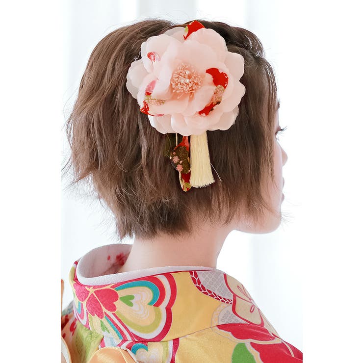 成人式の振袖や卒業式の袴におすすめな髪飾り 成人式の振袖や卒業式の袴におすすめな髪飾り。 異素材と和柄を重ねた花びらに、花の中心には小粒のビジューが輝きます。 和柄のコントラストが美しく、華やかなお着物の他にも浴衣にもおすすめです。花びらと同色のブラ飾りと房飾りが揺らめき、動きのあるヘアスタイルをお楽しみいただけます。 装着は簡単なコーム式で、どなたでも簡単にヘアアレンジする事が出来ます。 成人式の振袖や、卒業式の袴など、華やかなお着物との相性は抜群です。 髪飾りは、お顔の一番近い部分につけるものですから、とっても目立つ所です。 こちらの髪飾りでしたら、晴れの日の着物スタイルをより一層引き立ててくれることでしょう。 商品詳細■色ピンク■取付コーム注意事項※柄部分は大きな生地を使用して作られておりますので、色や柄の出方が画像と異なる場合がございます。サイズ表?縦横高さブラ長さ房飾りサイズ約11cm約11cm約5cm約12cm約13cm返品・交換について購入後の交換は受け付けておりません。予めご了承ください。返品を希望される場合は購入履歴一覧の「ショップへの問い合わせ」よりお問い合わせください。=========================複数配送先指定について1件の注文に対して、異なる住所への配送は対応出来かねます。恐れ入りますが、異なる住所へ配送をご希望の場合、配送先毎に分けて注文いただきますようお願い申し上げます。【浴衣・着物WOMEN】