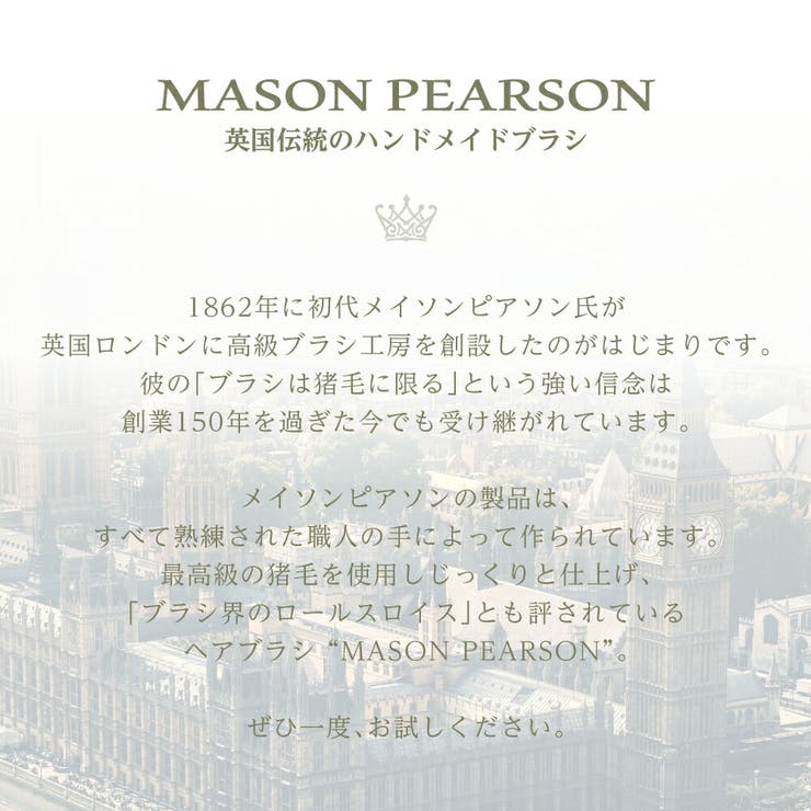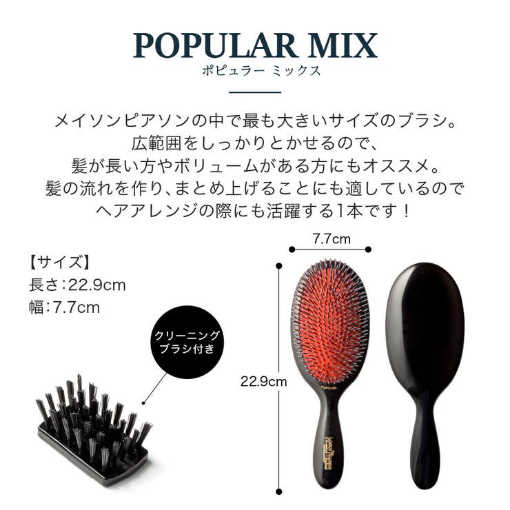 商品内容メイソンピアソン MASON PEARSON ポピュラーミックス ダーク・ルビー ヘアブラシ1つ1つ職人による手作業で作られているヘアブラシです。猪毛とナイロンのミックスタイプとなります。大きいサイズなので、毛量の多い方や髪質の硬い方にもおすすめです。天然の猪毛を使用しておりますので、新品または数回のご使用でも猪毛が折れたり、曲がったりする場合がございます。不良品ではございませんのでご了承くださいませ。ご使用の上で問題はございませんが、気になる方はその部分をカットしてご使用いただければと思います。※入荷時期により、予告なくパッケージが変更される場合もございます。その際のパッケージのご指定はお受けしておりません。 商品区分雑貨(ヘアブラシ)メーカーMASON PEARSONその他※こちらの商品は、海外の正規ルートからの並行輸入品となります。国内の正規代理店で購入された場合と仕様が異なる場合がございます。予告なく商品画像とはパッケージが変更になる場合がございます。また、多少の傷や凹みがある可能性がございますので、予めご了承の上ご購入くださいませ。返品・交換について購入後の交換は受け付けておりません。予めご了承ください。返品を希望される場合は購入履歴一覧の「ショップへの問い合わせ」よりお問い合わせください。=========================複数配送先指定について1件の注文に対して、異なる住所への配送は対応出来かねます。恐れ入りますが、異なる住所へ配送をご希望の場合、配送先毎に分けて注文いただきますようお願い申し上げます。【ヘアケアWOMEN】