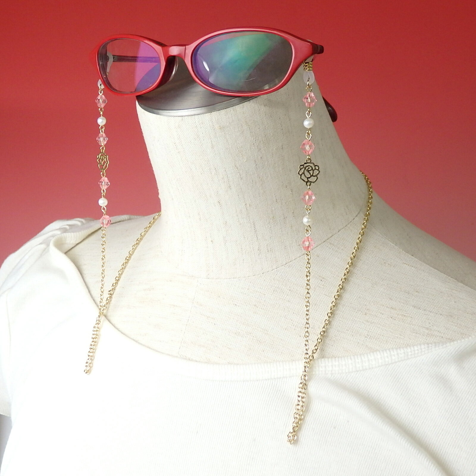 メール便 メガネチェーン 情熱の薔薇 淡水真珠 淡水パール ローズ 眼鏡チェーン パール めがねチェーン マスクチェーン クリスマス ギフトに プレゼントに