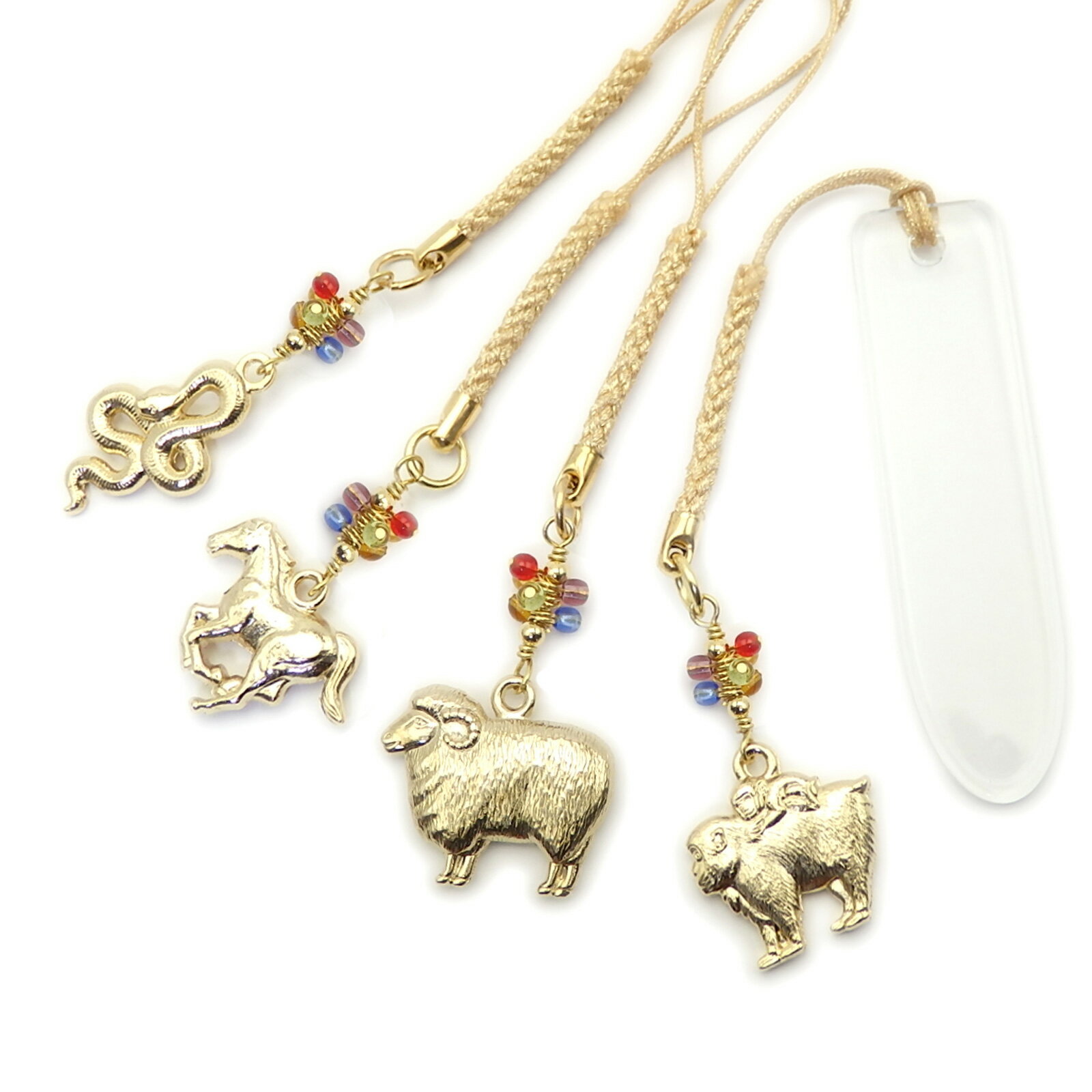 メール便 午年 うま年 帯飾り ゴールドカラー 干支 厄除け 七色 ビーズ 十二支 えと 金運 馬 へび 蛇 ヘビ 金色 根付ストラップ 根付け 帯飾りプレート 巳年