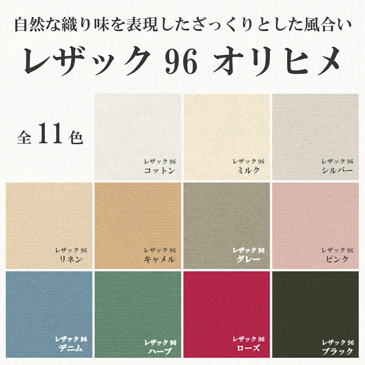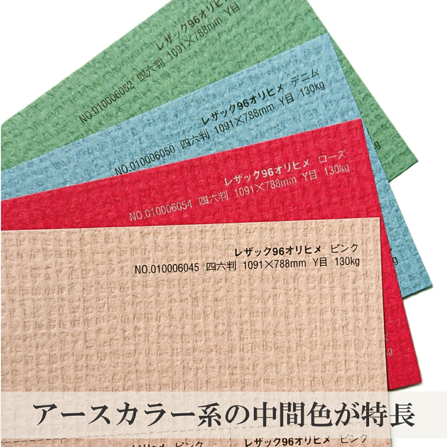 商品情報A3サイズ寸法=420mmx297mm30枚入りA4サイズ寸法=297mmx210mm33枚入りB4サイズ寸法=364mmx257mm32枚入りB5サイズ寸法=257mmx182mm32枚入りレザック96 オリヒメ 130kg選べる4サイズ 11色 厚さ0.33mmオリオン 古代日本風土の匂いをかもしだす肌触りとザックリした素朴な古代織りの風合いを再現しました。 5
