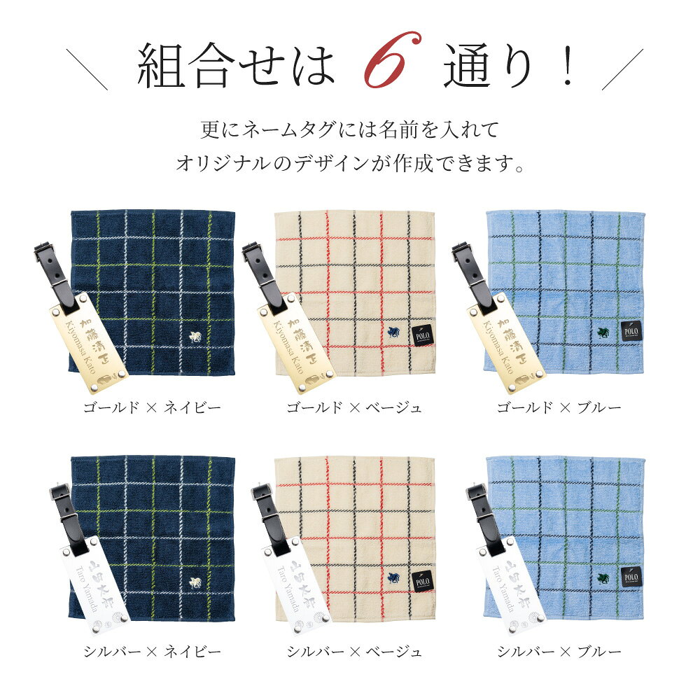 名入れ ゴルフネームタグ & POLOハンカチセット ゴルフネームプレート ゴールド シルバー メンズ 男性 ギフトセット ゴルフ ゴルフグッズ ハンカチ 上司 誕生日 プレゼント 贈り物 名前入り ギフト ゴルフ好き ザワウ クリスマス お歳暮