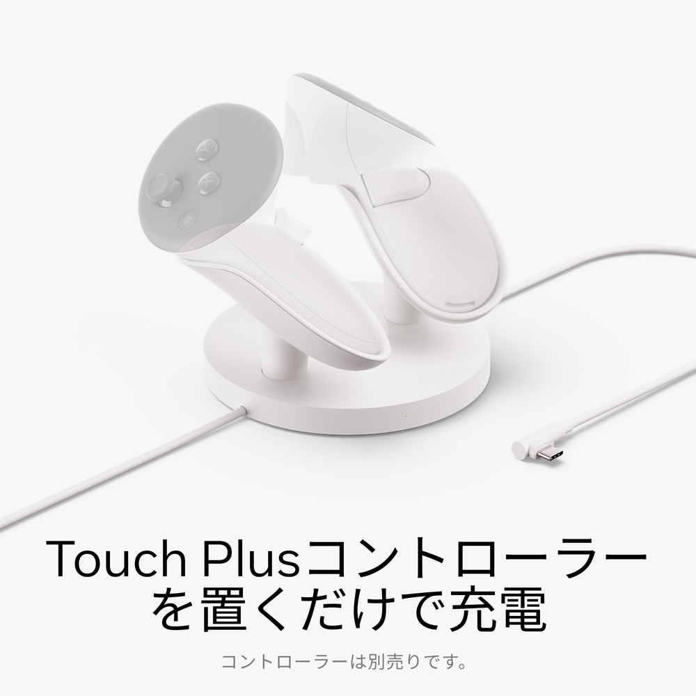 META メタ Meta Quest コンパクト充電ドックMeta Quest コンパクト充電ドック★ ワイヤレスコントローラーを置くだけで充電できるコンパクト充電ドックで、いつでもフル充電で複合現実(MR)や仮想現実(VR)の世界に飛び込めます。充電中は、Meta Quest 3/3SヘッドセットとTouch Plusコントローラーをすっきりとディスプレイ。ヘッドセット用の充電ケーブルとコントローラー用の充電式リチウムイオンバッテリーも付いています。この充電ドックは、アクティブストラップ(別売り)を付けた状態で使用できます。★ 高い互換性Meta Quest 3/3Sに対応し、Touch Plusコントローラーやアクティブストラップと併用できます。★ 便利なドロップイン充電置くだけでTouch Plusコントローラーを簡単に充電でき、オーバーヒート保護機能が付いているので、安心してフル充電できます。★ ヘッドセットも充電Meta Questヘッドセット用の充電ケーブルも付いています。★ バッテリー使用状況を表示ヘッドセットを装着したまま、コントローラーの正確なバッテリー残量を確認できます。Touch Plusコントローラー用の充電式リチウムイオンバッテリー2個付き。★ 上質なMetaのアクセサリーMeta Quest 3/3Sとの互換性を考えてデザインされ、徹底したテストが行われています。※ 製品及び付属品のデザイン・色・仕様等は予告なく変更される場合があります。※ 製品及び付属品のデザイン・色・仕様等は予告なく変更される場合があります。