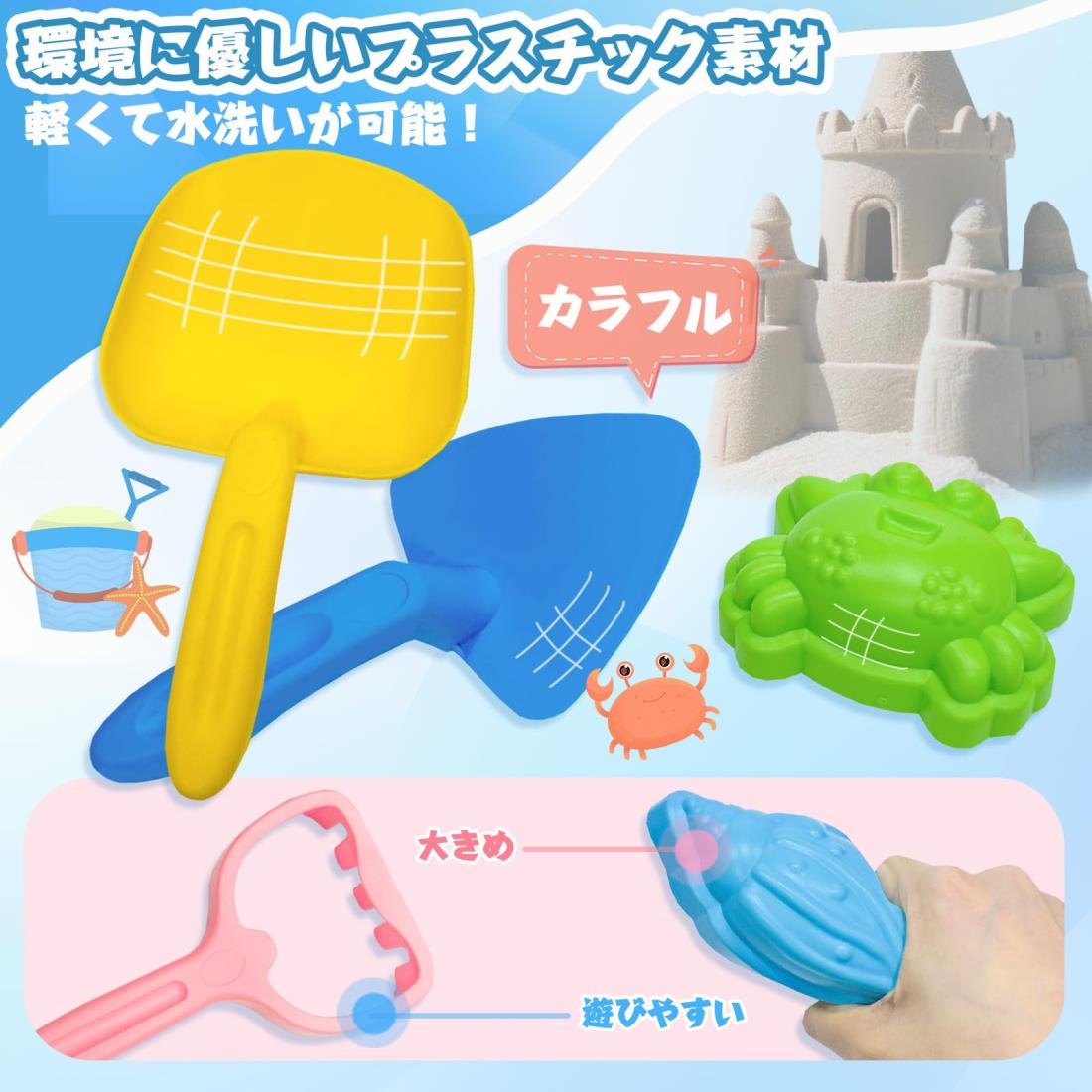 ◆商品名:VBACALA 砂遊び 砂遊びおもちゃ お砂場 2IN1 ダンプカーセット スコップ くまで 型抜き 砂場おもちゃ 調整可能 収納バッグ付き 雪遊び 砂場遊び 公園 ビーチ おもちゃ 男の子 女の子 プレゼントプラスチック製:軽くて丈夫なプラスチック素材を使用した砂遊びおもちゃで、割れにくい特徴があります。更に角が丸い構造になっています、子どもがあんしんして使えます。かわいいお砂場セットなので、子どもへプレゼントを贈りたい方におすすめですよ!セット内容:スコップ・シャベル・くまで・砂場ダンプカー・4種類の型が付属しています!型に砂を押し込んで固めて、簡単にカニやクジラやホラガイやヒトデを作ることが可能、上手に型抜きできますか?是非挑戦してみてください~~2IN1組み立て式の砂場ダンプカー:ユニコーンをモチーフにした砂場車で、砂を入れて運ぶことができ、本物そっくり!またダンプカーを分解すると、車から砂場遊び道具に大変身!!!お砂場遊びがもっと楽しくなるでしょう!砂場遊びを楽しめる:スコップで砂を掘ったり、砂を集めて好きな形にしたり、様々な遊び方があるのが嬉しいポイントです!自由度が高い砂場遊びので、楽しく遊びながら子どもの想像力を高めますよ。収納バッグ付き:専用の収納バッグが付き、特にバッグ底が網目状で砂が入っても落ちやすいです。肩紐も身長に合わせて、長さを調整することができます、公園・ビーチへ持ち運びが便利です。