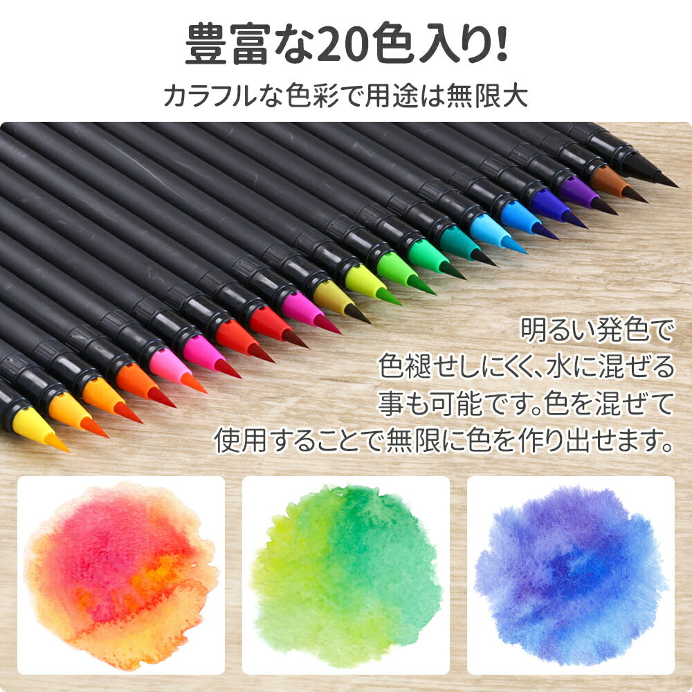 水彩筆 水彩ペン カラーペン ペン 20色 セット 水筆 水彩 水彩画 塗り絵 ぬりえ 水彩セット 多色 学校 小学校 大人 子供 こども お絵かき デッサン アート デザイン 筆付き 水筆 ケース付き ケース 保管 イラスト お絵描き ぼかし 20本筆セット画材 アートマーカー