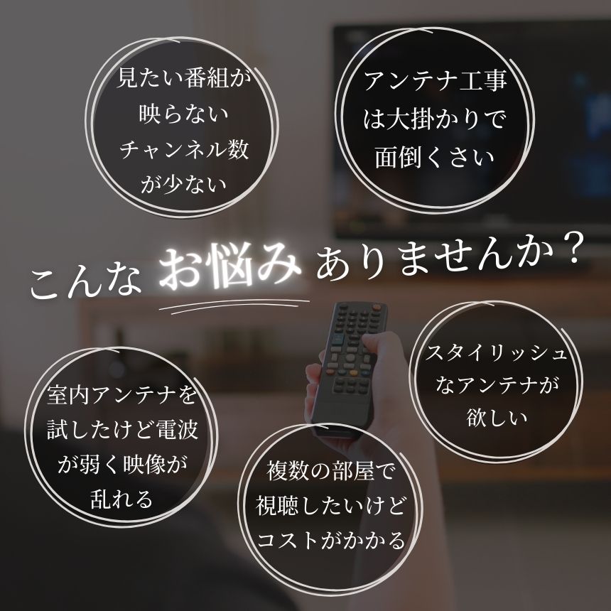最新強化版・室内テレビアンテナ登場!「もっと多くのチャンネルを無料で楽しみたい」「工事不要で簡単に設置できるアンテナが欲しい」——そんな声にお応えして誕生したのが、当店の最新強化版室内テレビアンテナです。高性能アンプ(ブースター)を内蔵し、受信感度を飛躍的にアップ。周波数の明瞭度を高め、受信範囲を拡大することで、従来よりも3倍の受信容量を実現しました。テレビ塔からの電波を効率的にキャッチし、これまで映らなかったチャンネルまでも鮮明に映し出します。【長距離受信×360度全方位】「アンテナの向きを変えても電波が安定しない…」そんな悩みを解決!当アンテナは独自開発のスマートブースト技術を搭載。最大450kmの受信範囲を誇り、360度全方位からの信号を逃さずキャッチします。低周波のVHFから高周波のUHFまで、幅広い帯域に対応。地上波デジタルはもちろん、地域のテレビ局から送信されるさまざまな電波を効率的に受信できます。設置後わずか数分でチャンネルスキャンが完了し、HD高画質チャンネルを無料で楽しめるのも魅力です。【クリアな4K画質】アンテナ内部には高精細スマートICチップを搭載。従来比で90%画質改善を実現しました。低ノイズ処理により、ブロックノイズやザラつきの少ないクリア映像をお楽しみいただけます。もちろん4K画質にも対応。映画、ドラマ、ニュース、スポーツ観戦など、まるで有料放送並みの高品質映像を無料で視聴可能です。【工事不要&超薄型デザイン】アンテナ設置にありがちな「工事が必要」「大掛かりで面倒」という不安は不要です。軽量・超薄型設計のため、壁に掛けても、窓際に置いても邪魔になりません。お部屋の雰囲気を損なわず、スマートに設置可能です。使い方はとても簡単アンテナをテレビの背面デジタル入力に接続テレビの設定画面から「チャンネルスキャン」を選択数分待つだけで視聴可能専門知識は一切不要!届いたその日から快適にテレビを楽しめます。【購入前のチェックポイント】アンテナ性能を最大限発揮するために、ご購入前に以下をご確認ください。ご自宅が放送エリアに含まれているか設置環境に電波を遮る高層建物や建物が密集している居住区、山などがないか窓際や高い位置など、電波が入りやすい場所に設置できるかこれらをチェックいただくことで、より安定したテレビ視聴が可能となります。【充実のセット内容】アンテナ本体 ×1電源ケーブル ×1F→SMA変換コネクタ ×14.4m同軸ケーブル ×1さらに、高感度ブースターアンテナを採用しているため、従来品に比べて受信強度が格段にアップ。出力される映像は、よりシャープで滑らかな画質となっています。【こんな方におすすめ】・ケーブルテレビの契約費用を節約したい方・引っ越しや単身赴任先で簡単にテレビを視聴したい方・高画質でスポーツや映画を楽しみたい方・工事なしで手軽に設置できるアンテナを探している方・シンプル&スタイリッシュなデザインを求める方テレビライフをもっと快適に、もっと自由に。この最新強化版室内テレビアンテナがあれば、今までの「映らない」「設置が大変」といった悩みはもう不要です。高性能ブースターでクリアな4K映像を無料で視聴し、ケーブルテレビ料金を賢く節約。工事不要で誰でも簡単に設置できるので、ご家庭用はもちろん、一人暮らしやプレゼントにも最適です。★★送料無料★★※北海道は330円、離島地域及び沖縄県は950円にて承ります。。