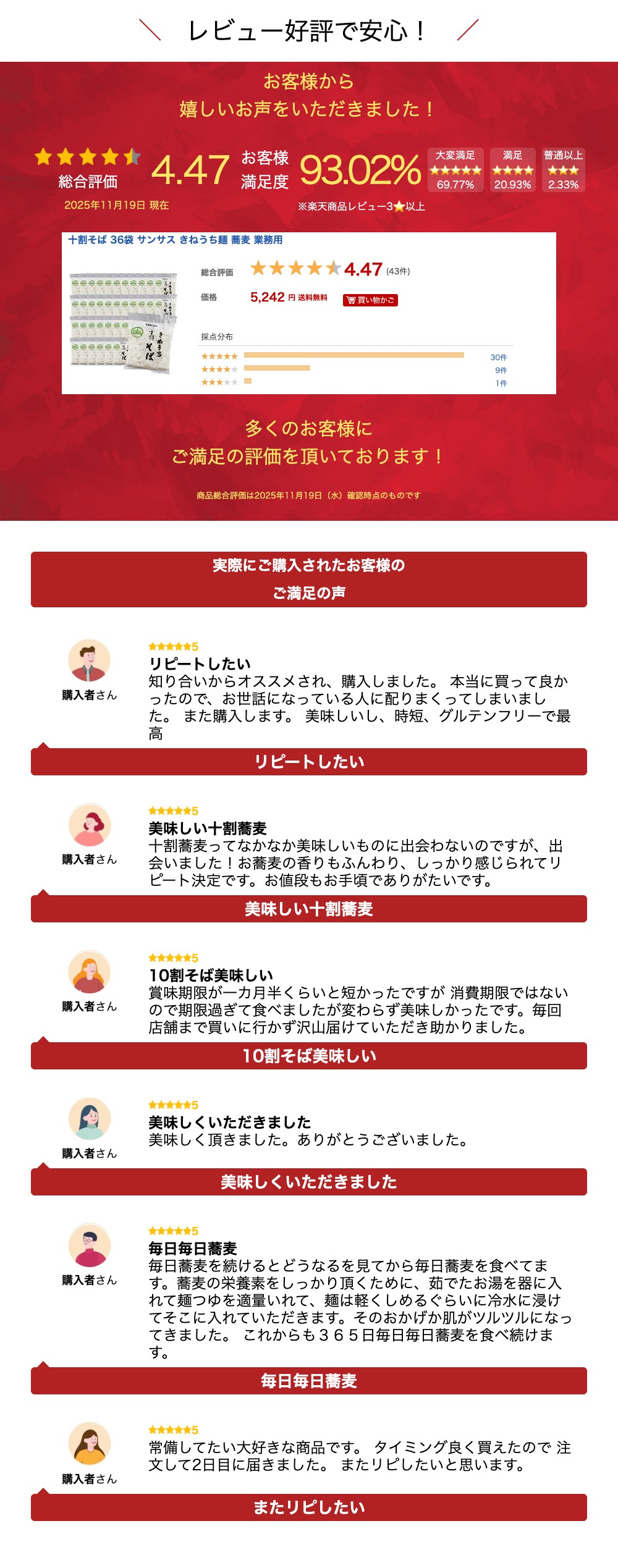 商品情報 商品の説明 きねうち麺のそばは、食塩不使用、厳選したそば粉100%で作った高級10割そば。つるっとしたのどごしと、麺ごしの強さが特徴です。伸びにくいのでアレンジレシピも豊富です。※予告なくパッケージデザイン、商品仕様が変更することがございます。 ■商品スペック:【パッケージ】段ボール箱 【温度帯】常温 【賞味期限】製造後、賞味期間:製造日より60日 【原産国】日本 ■商品内容:サンサス 十割そば 麺のみ×36 ... 主な仕様 商品スペック:【パッケージ】段ボール箱【温度帯】常温【賞味期限】製造後、賞味期間:製造日より60日【原産国】日本 商品内容:サンサス 十割そば 麺のみ×36パック ×1個/麺150g×1食入)×36パック[食品ブランド][サンサス無添加麺] 関連商品業務用 きねうち麺 十割そば 150g×20個...業務用 きねうち麺 十割そば 150g×15個...3,080円2,550円きねうち麺 十割そば 150g 12パック大東カカオ クイックメルト カカオマス 1kg 製菓用...2,031円5,250円カークランド 冷凍 ブルーベリー 2.27kg 冷凍食品...北海道 よつ葉 脱脂粉乳 スキムミルク 1kg×3袋...4,998円5,030円【KIRKLAND】カークランド 冷凍 ブルーベリー 2.27kg...QP キューピー 乾燥全卵 1kg NO1 製菓用 製菓 乾燥 卵 全...4,998円5,320円カルピスバター 有塩 450gx3個セット 業務用 バター...カークランド 冷凍 ブルーベリー 2.27kg...4,998円4,998円