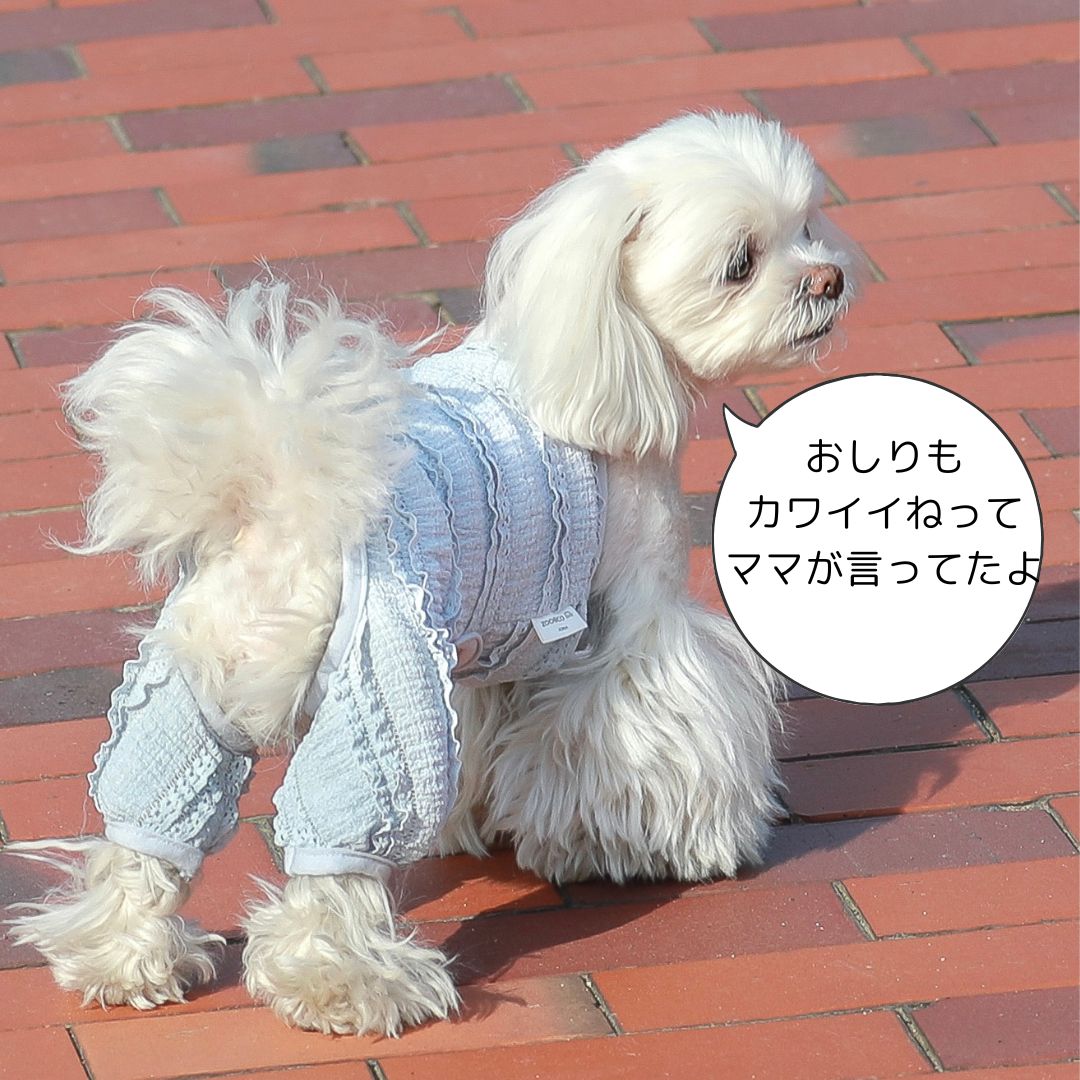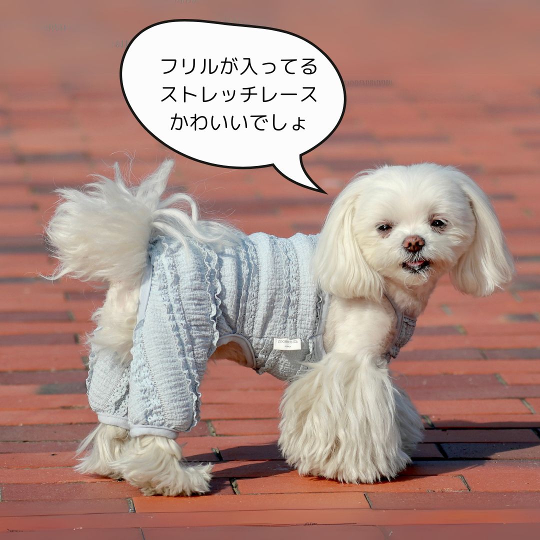 犬 服 つなぎ レースキャミオール 韓国 ブランド ZOOBICO オーバーオール かわいい おしゃれ お出かけ着 伸縮性あり 柔らかい 着せやすい ホワイト ブルー シュービーンズ