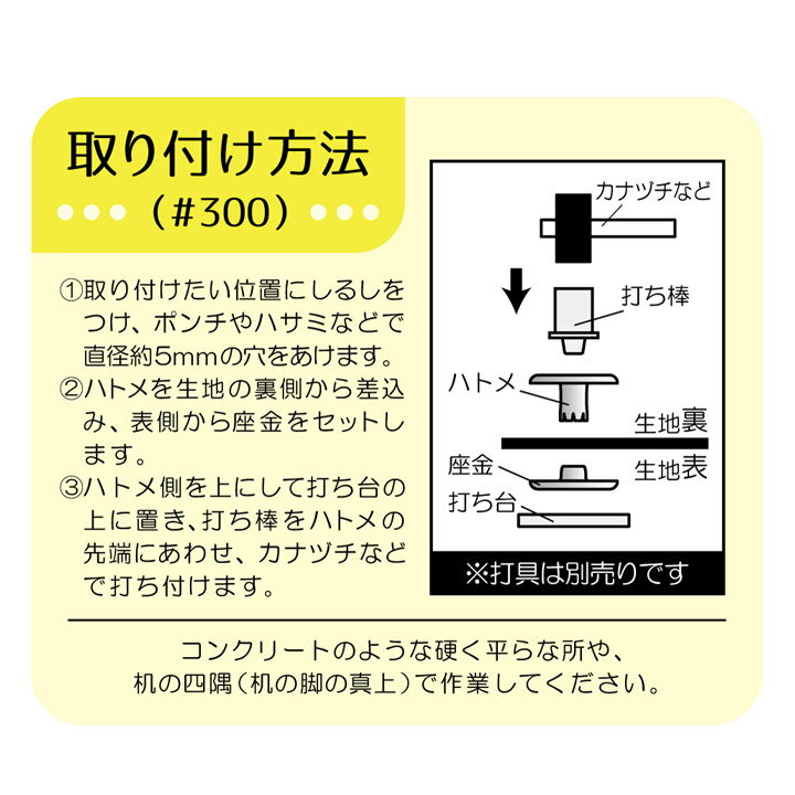 サンコッコー 両面ハトメ #300 外径10mm/内径5mm 12組入 | ソーイングツール アロマワックスサシェ 紐通し穴 鳩目 はとめ ハト目 ひも穴 レザークラフト 金具