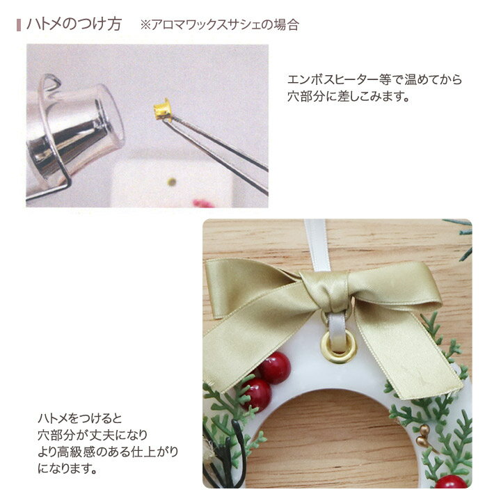 ひも通しの穴の補強や装飾に。裏面もきれいな両面タイプ。強くサビにくい真ちゅう製です。保管に便利なプラケース入り。【 サイズ(約) 】 6.8×5×厚さ2cm(フック部含まないパッケージサイズ)外径10mm、内径5mm(ハトメサイズ)【 入数 】 ハトメ(オス12個、メス12個)計12組【 素材 】 真ちゅう【 生産国 】 日本【 最適な生地の厚み 】 圧縮して約1〜2mm程度の厚みの生地【 用意するもの 】 サンコッコー 両面ハトメ 専用打ち具 #300、カナヅチなど【 発売元 】 清原株式会社 SUN11-181〜184アロマワックスサシェにハトメをつけると、穴部分が丈夫になり高級感のある仕上がりになります。エンボスヒーターなどでハトメを温めてから穴部分にさし込みます。サシェの場合は、オスのみを使用し、打ち具は使いません。布・レザーに使用する場合は、ポンチや目打ちで5mmの穴を開けたところへ両面ハトメを差し込み、打ち付けます。打ち付けは「サンコッコー 両面ハトメ 専用打ち具 #300」をご利用ください。※メール便可能です。 メーカー希望小売価格はメーカーカタログに基づいて掲載していますサンコッコー 両面ハトメ #300 外径10mm/内径5mm 12組入 【メール便可】 【レザークラフト 道具・副資材】の商品一覧はこちら! 【キャンドルクラフト】一覧はこちら! 【ハトメ・カシメ】一覧はこちら! ▼関連商品はこちら サンコッコー 両面ハトメ 専用打ち具 #300 エンボスヒーター