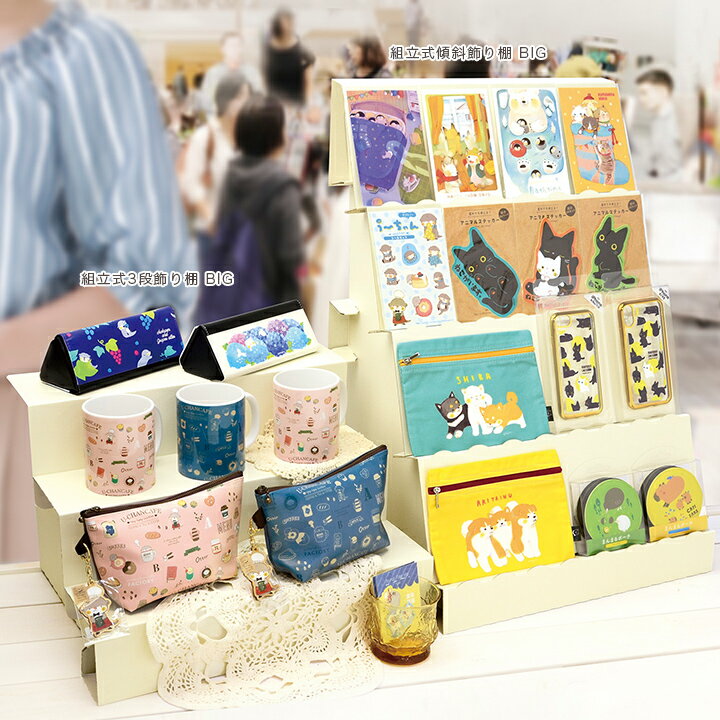 【 サイズ(約) 】本体(組立時) … H620×W420×D345mm(1段…高さ160mm×奥行30mm)【 入り数 】 1台【 材質 】 段ボール(厚1.5mm)【 発売元 】 ササガワBIGサイズ!ハガキサイズの大きめの作品に!大ぶりアクセサリー、ポストカード、スマホケースなどに最適♪たくさんのアクセサリーを展示できる!高さのあるラックディスプレイ。搬入・搬出時の持ち運び楽々!軽い!かさばらない!簡単組立・コンパクト設計畳むと約A3サイズの大きさになります。◎小スペースでも効率的に作品展示ができる、マチ幅が狭く高さのある紙製什器です。高さがあることでより多く作品を展示でき、ストッパーに台紙をスッキリと整列させることでお客様が手に取りやすく戻しやすい設計となっています。◎紙製なので軽く、組立式なのでかさばらず、搬入・搬出時の持ち運びも楽々!◎「3段飾り棚」との組み合わせの相性も抜群!◎デッドスペースを上手に有効活用!裏面には小物を置ける小窓付き!(水濡れにご注意ください)◎表面に質感のある紙を使用!◎無地だから、スタンプやシール、マステで自分流にアレンジしやすいですね。※2023年10月2日(月)より価格を改定しています。組立式 傾斜かざり棚 BIG 遠くからでも存在感抜群! 紙製ディスプレイに大きめの作品がたくさん飾れるビッグサイズが新登場! 【オリジナルワークス特集】一覧はこちら! ▼関連商品はこちら 組立式 傾斜かざり棚