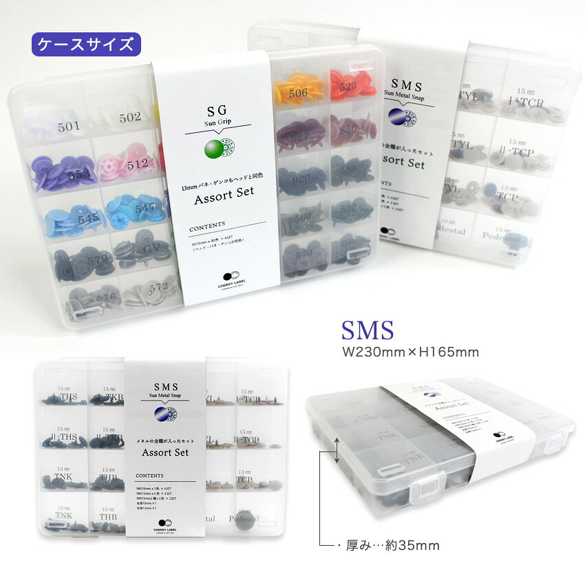 CHERRY LABEL プラスチックスナップ 47組 セット SMS 10mm 13mm 15mm ケース付 | カジテック チェリーレーベル プラスナップ ホック ボタン プラボタン ポリボタン 大容量 ハンドメイド 手作り 手芸