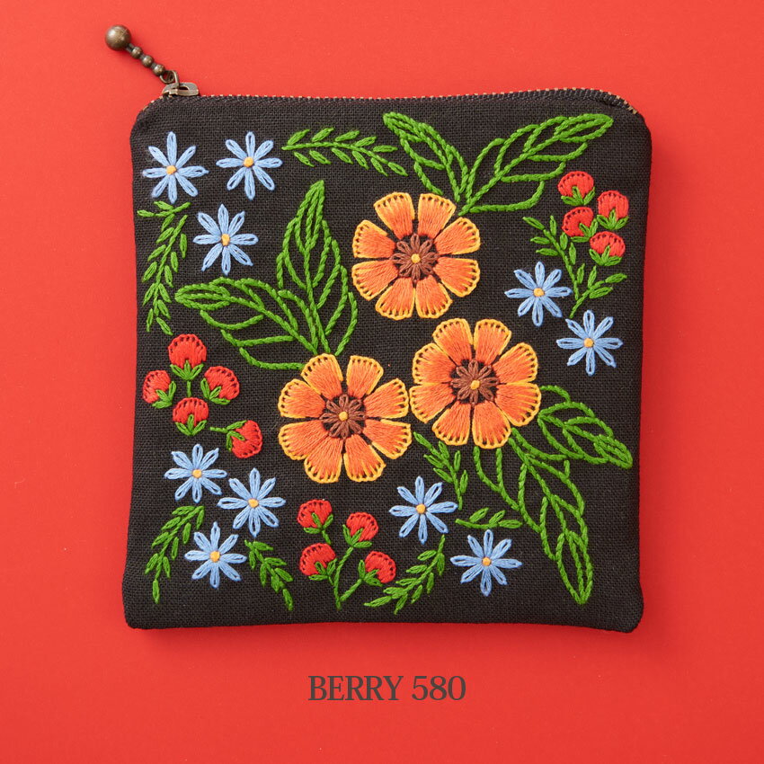 戸塚刺繍キット Wild Garden スクエアポーチ2 | 戸塚刺しゅう 刺繍キット フランス刺しゅう 図案プリント済み