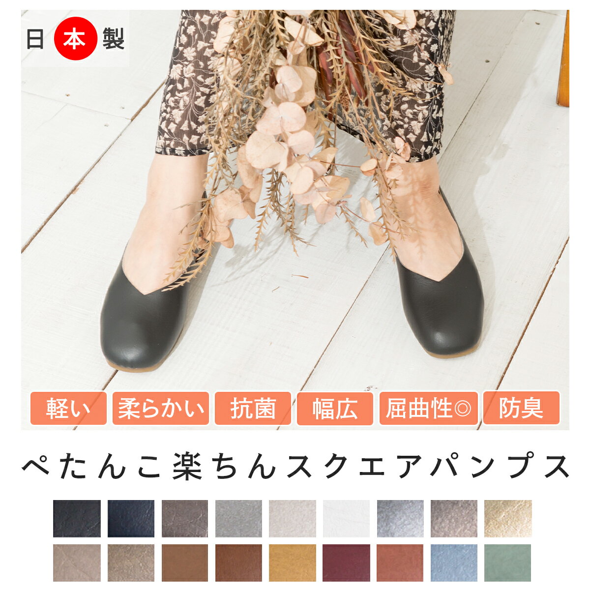 【P最大10倍 15%OFFクーポン対象】パンプス 痛くない スクエアトゥ Vカット フラット フォーマル 日本製 かかと 靴擦れ 脱げない 走れる 歩きやすい フラット レディース 福袋対象