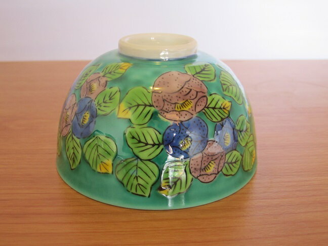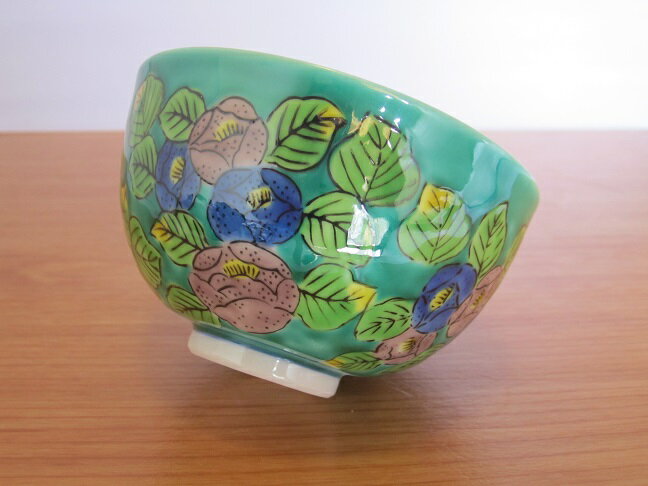 【九谷焼】 飯碗(お茶碗) グリーン山茶花(小)