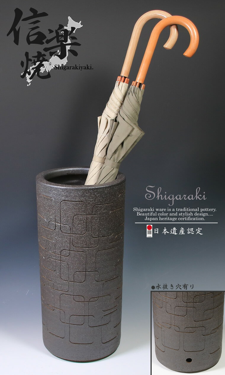 【スーパーSALE 20%OFFクーポン】傘立て 陶器 おしゃれ 信楽焼 かさたて 和風 傘立て 傘入れ 壷 しがらき カサタテ やきもの傘立て かさたて陶器 玄関 黒釉彫模様傘立て kt-9002