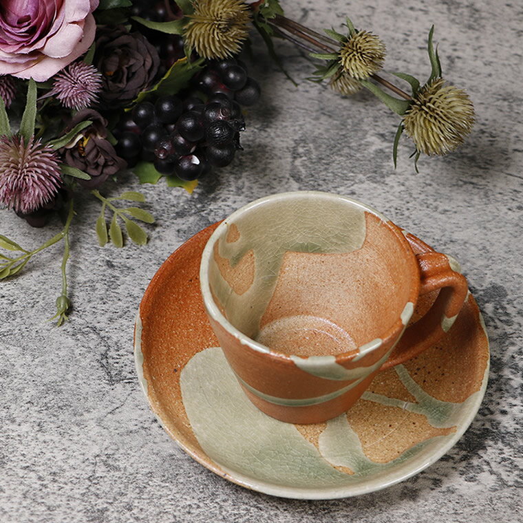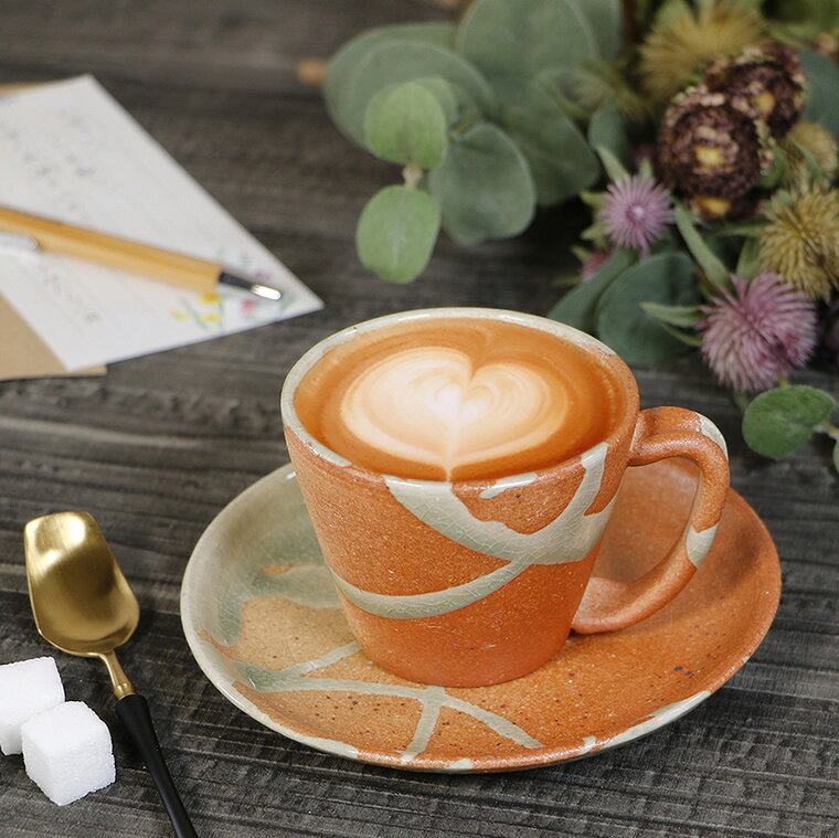 【ブラックフライデー限定15%OFFクーポン配布中】信楽焼 コーヒーカップ 190ml(満水時) おしゃれ 和風 来客用 珈琲カップ コーヒーカップ&ソーサー 陶器 珈琲カップ ソーサー 信楽焼 茜コーヒー碗皿w407-01