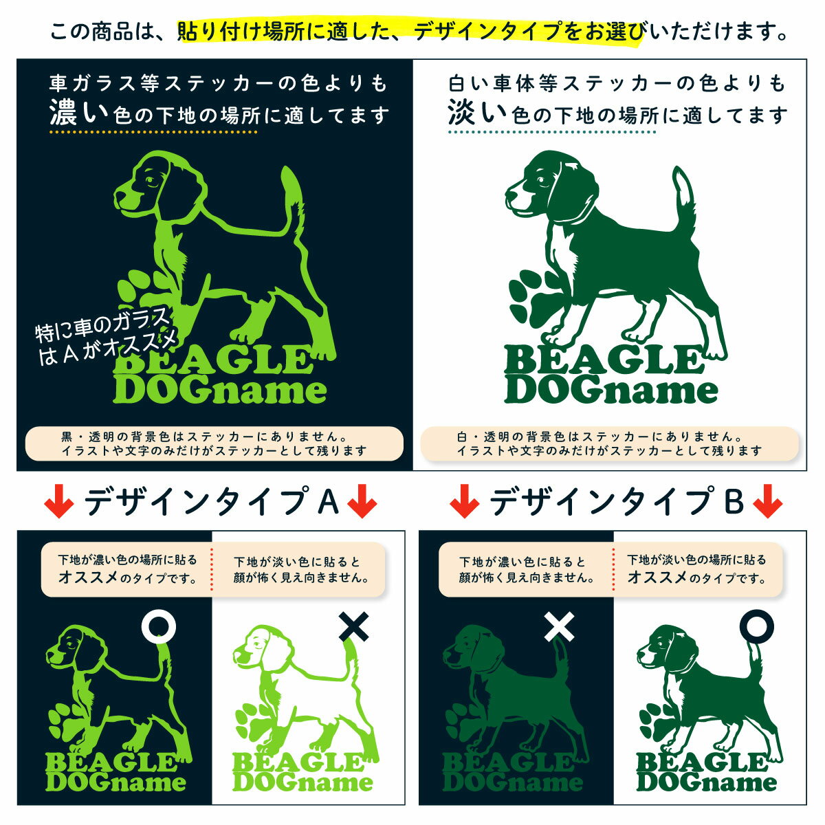 ビーグルカッティングステッカー ビーグル 愛犬家のための名前入りステッカー おしゃれなデザイン 名入れ 車窓ステッカー 犬 かわいい プレゼント シール 1