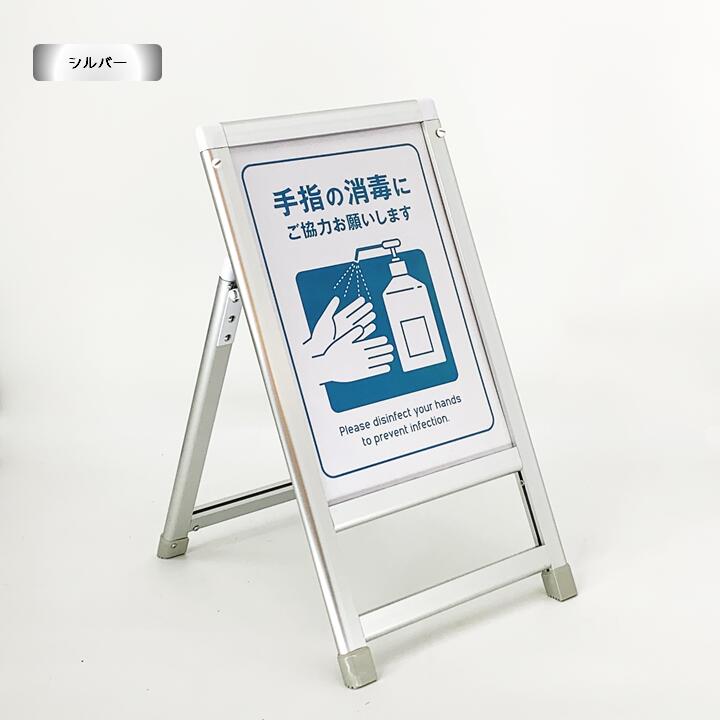 \かんたん持ち運び/ 店舗用 A型 ポスター 看板 PPS-A3 片面 A3 ブラック シルバー W340XH580XD400mm コンパクト カードケース ピッコロ
