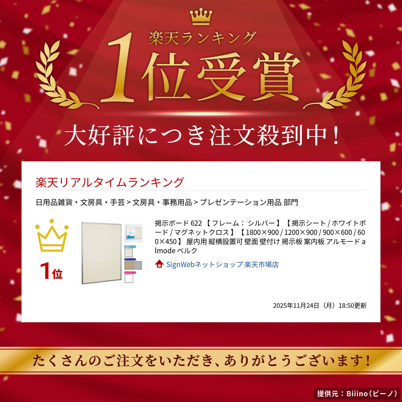 掲示ボード 622 【 フレーム: シルバー 】【 掲示シート / ホワイトボード / マグネットクロス 】【 1800×900 / 1200×900 / 900×600 / 600×450 】 屋内用 縦横設置可 壁面 壁付け 掲示板 案内板 アルモード almode ベルク