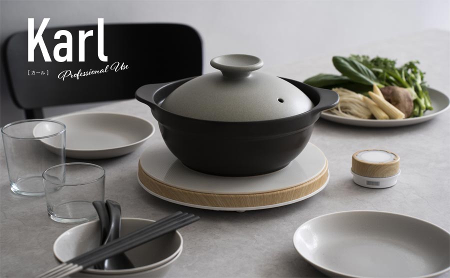 【Karl(カール)IH軽量土鍋8号(身+フタ)】 M.STYLEがプロユース向け食器ブランドとして培ってきた経験を背景に、プロ使用にも耐え、かつご家庭でも気軽に安心して使っていただけるIH対応の土鍋が完成しました。 プロが認める“超”軽量のIH土鍋です。 もちろん直火にも対応。 吸水率ほぼ0%のTHERMATEC製(サーマテック製)。 Karlは水張り吸水0.5%以下を実現。 カビの心配が少なく、お料理のにおいが染みつきにくいので、昨日はカレーで今日は水炊き、のような使い方でも大丈夫。 プロが求めたIH“超”軽量土鍋は実際に持ってみると驚くほど軽い。 普通の土鍋は重いものが多いので、準備や洗い物などの片付けが大変。 しまってある場所からの出し入れがちょっと面倒ですよね。 でもこの土鍋は違う。 一般的な土鍋製品の約1/2の重さ! とにかく軽い。しかも丈夫。そしておしゃれ。 是非手に取って実感して下さい。 鍋料理の、準備も、後片付けも、持ち運びも楽々なので、特に寒い季節はおいしい鍋料理を何度でも楽しんじゃいましょう。 8号サイズは一般的に2〜3人用が目安の容量です。 【Karl/カール】 軽いという音の響き、文字の見た目の軽やかさから生まれた名前。 おいしさの秘密である“遠赤外線効果”によって、食材を芯からじっくり加熱し、素材本来の美味しさを引き出します。 Karlは伝統的な味わいを現代の生活スタイルに落とし込んだ新しいIH土鍋です。 ■■■お手入れ■■■ この土鍋は、吸水をほとんどしないため、使い始めに 「目止め」をする必要はありません。 中性洗剤などで軽く洗ってからご使用ください。 吸水はほとんどありませんが、鍋の中に長時間料理を保存したり、鍋を水の中につけたまま放置しないでください。 土鍋本体は食器洗浄機は使用しないでください。 発熱体が劣化する原因になります。 ■■■その他の注意事項■■■ かならず使用に関する説明書をご確認ください。 ─┘─┘─┘─┘─┘─┘─┘─┘─┘─┘ 【商品詳細】 ■セット内容 本体、フタ×各1 ------------------------------------------------ ■サイズ 8号(2〜3人用が目安) 本体:幅29.2cm、φ24.5cm×高さ9.5cm、容量 1900cc フタ:φ22.7cm×高さ7.8cm セット:高さ14.5cm ------------------------------------------------ ■重量(本体+フタ) 1220g ------------------------------------------------ ■【本体】素材:高耐熱陶器 耐熱温度差:500℃ ×食洗機不可 〇電子レンジ対応 〇オーブン対応 〇直火対応 〇IH対応 ※ただし「オールメタル加熱方式IH」は非対応です。 ご使用されているIHヒーターの取り扱い説明書を必ずご確認のうえご購入ください。 IHヒーターのほうが非対応であった場合、本商品の返品および交換は承ることができませんのでご注意ください。 ------------------------------------------------ ■【フタ】素材:硬質陶器 耐熱温度差:150℃ 〇食洗機対応 〇電子レンジ対応 〇オーブン対応 ×直火不可 ------------------------------------------------ ■特長 一般的な土鍋製品の約1/2の重さ。 ------------------------------------------------ ■マレーシア製 ------------------------------------------------ ※在庫について この商品は当店別店舗でも販売しております。 在庫数の更新は随時行っておりますが、状況によっては商品が品切れとなることもございます。また商品取り寄せによりお届けまでにお時間をいただく場合もございます。 お客様には必ず連絡をいたしますが、万が一メーカーで品切れ等の理由により入荷予定がない、もしくは入荷が遅れる場合はキャンセルさせていただく場合もございますことをあらかじめご了承ください。 ─┘─┘─┘─┘─┘─┘─┘─┘─┘─┘ #karl▼ Karl シリーズ こちらもいかがでしょうか。 ▲ 土鍋9号 ▲ 土鍋8号 ▲ 土鍋6.5号 ▲ 蒸し皿 9号用 ▲ 8号用 ▲ 6.5号用 ▲ とんすい ▲ レンゲ ▲ レンゲ台 M.STYLEがプロユース向け食器ブランド として培ってきた経験を背景に、 プロ使用 にも耐え、 かつご家庭でも気軽に安心して 使っていただけるIH土鍋を作りました。 プロが認める“超”軽量のIH土鍋です。 一般的な土鍋製品の約1/2の重さ! とても軽く、素地は薄づくり。 なのに丈夫で安心の使い心地です。 深めのフチや独自のカーブを追求し、 吹きこぼれにくい形状にたどり着きました。 鍋を囲むと楽しくて、 つい話に夢中になってしまうことも。 土鍋本体は耐熱温度差500度クリアの高耐熱素材。 様々な熱源に対応しているJIS高耐熱製品です。 IH調理器を使うために欠かせない発熱体は多層構造。 ガラス質で守られている銀膜(発熱体)は加熱ムラを減らし、異常加熱を防ぎます。 その発熱体を土鍋の外側につけたことで土鍋の魅力はそのままに、手軽に扱えるIH土鍋が実現。 おいしさの秘密である“遠赤外線効果”によって、食材を芯からじっくり加熱し、素材本来の美味しさを引き出します。 Karlは伝統的な味わいを現代の生活スタイルに落とし込んだ新しいIH土鍋です。 <蒸し皿(9号用)> <蒸し皿(8号用)> <蒸し皿(6.5号用)> <とんすいボール> <レンゲ> <レンゲ台>