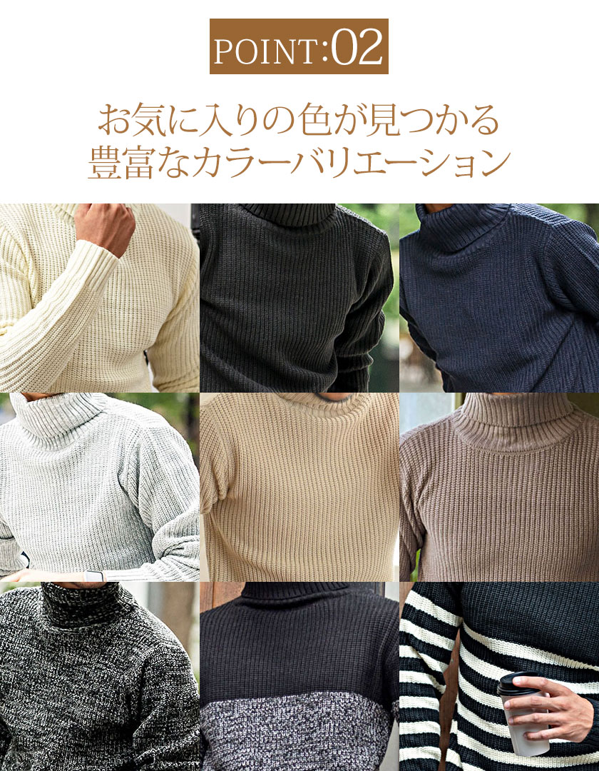 【送料無料】ニット メンズ セーター ブランド おしゃれ 畦編み あぜ編み タートルネック 長袖 トップス 厚手 畦編み 暖かい あったか シンプル 無地 大人 ゴルフウェア M L VICCI 20代 30代 40代 50代 ちょいワル ユニセックス 男性 男 服 秋 冬 秋冬 ファッション