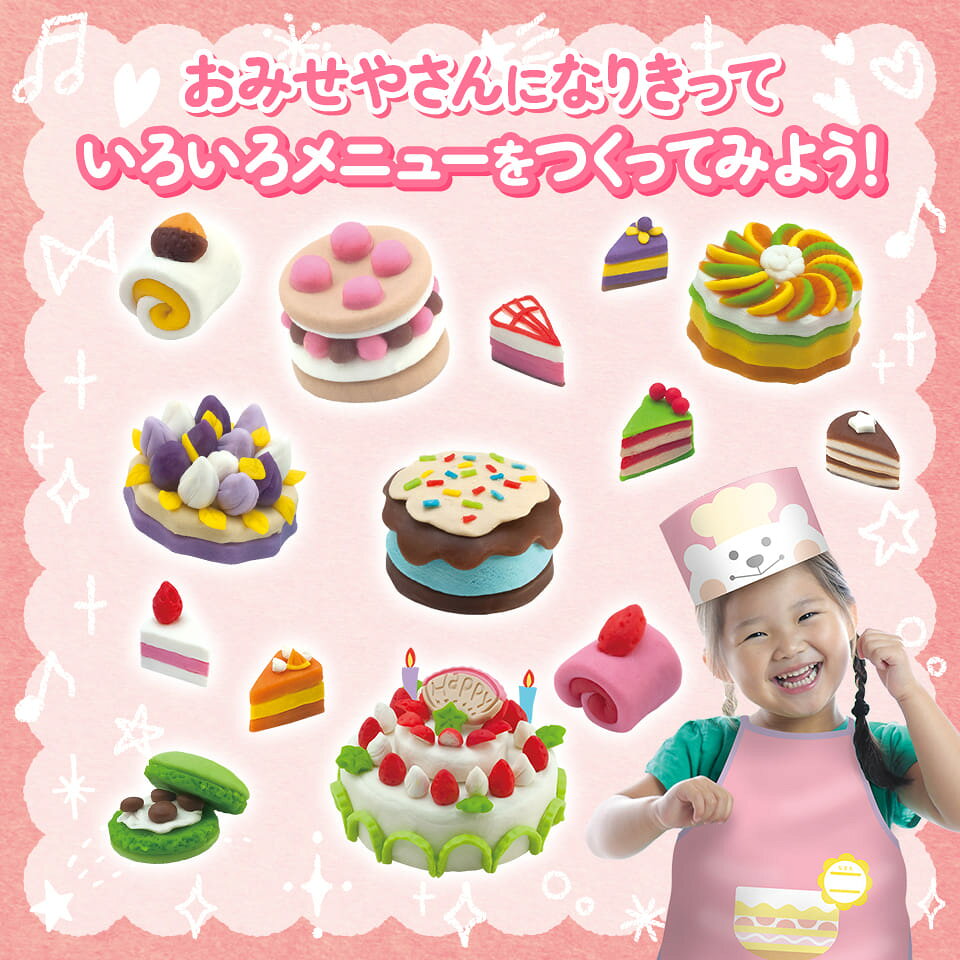 \ねんどシリーズ累計100万個突破!/知育玩具のシルバーバック【ルンルンッ♪ かわいいケーキやさんセット】ぼうし ごっこあそびねんど 粘土 こむぎねんど 小麦粘土 ねんどセット ねんど型 なりきり 遊び 誕生日 プレゼント 幼稚園 小学校 お祝い プレゼント 準備